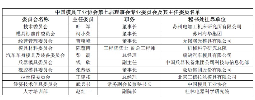 中國(guó)模具工業(yè)協(xié)會(huì)第七屆理事會(huì)專業(yè)委員會(huì)及其主任委員名單