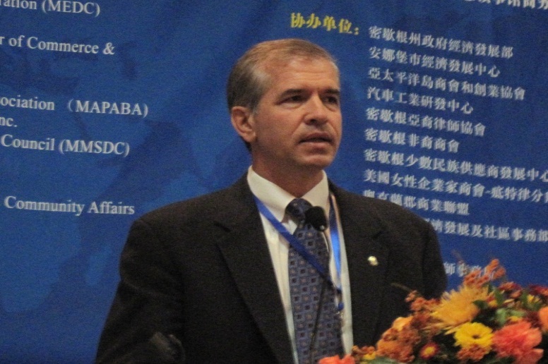 6,密歇根經濟發展署Mark Kinsler副署長做了“機遇盡在淳靜密西根”的精彩報告。介紹了2010年密西根州的復蘇情況、主要優勢、人才優勢、汽車行業的領先優勢:整車和零部件制造業數量第一(1,798),外商獨資企業占20%(357),北美百強汽車零部件供應商數量第一(61),工具和模具企業數量第一(1,526),汽車OEM裝配廠數量第一(12 ),部件OEM/材料廠數量第一(35),汽車行業的領先地位:全球研發中心,375家汽車研發和技術中心,其中120家是外資企業,每年與汽車有關的研發投入近120億美元,是美國各州中最多的,占全美25 %的汽車專利,達到其他州的2.5倍,北美汽車供應商百強企業中有61家總部都設在密西根州。該州也是北美的制造業中心,全美超過三分之一的制造業公司位于密西根州。同時還介紹了底特律被布魯研究所列為全國經濟大蕭條之后第9大“恢復最好”的城市 ,底特律 - 超值投資地之選。最后介紹了中國再密歇根州的投資情況,到目前為止,中國企業在密西根州的投資總額約為10億美元,在美國排名第9,95%的中國企業在密西根投資是在汽車行業,中國在密西根汽車研發外資投資中排名第一。現在有超過100家中國公司在密西根州開展業務。歡迎中國各行業的朋友到密歇根投資。促進中美合作,實現雙贏。