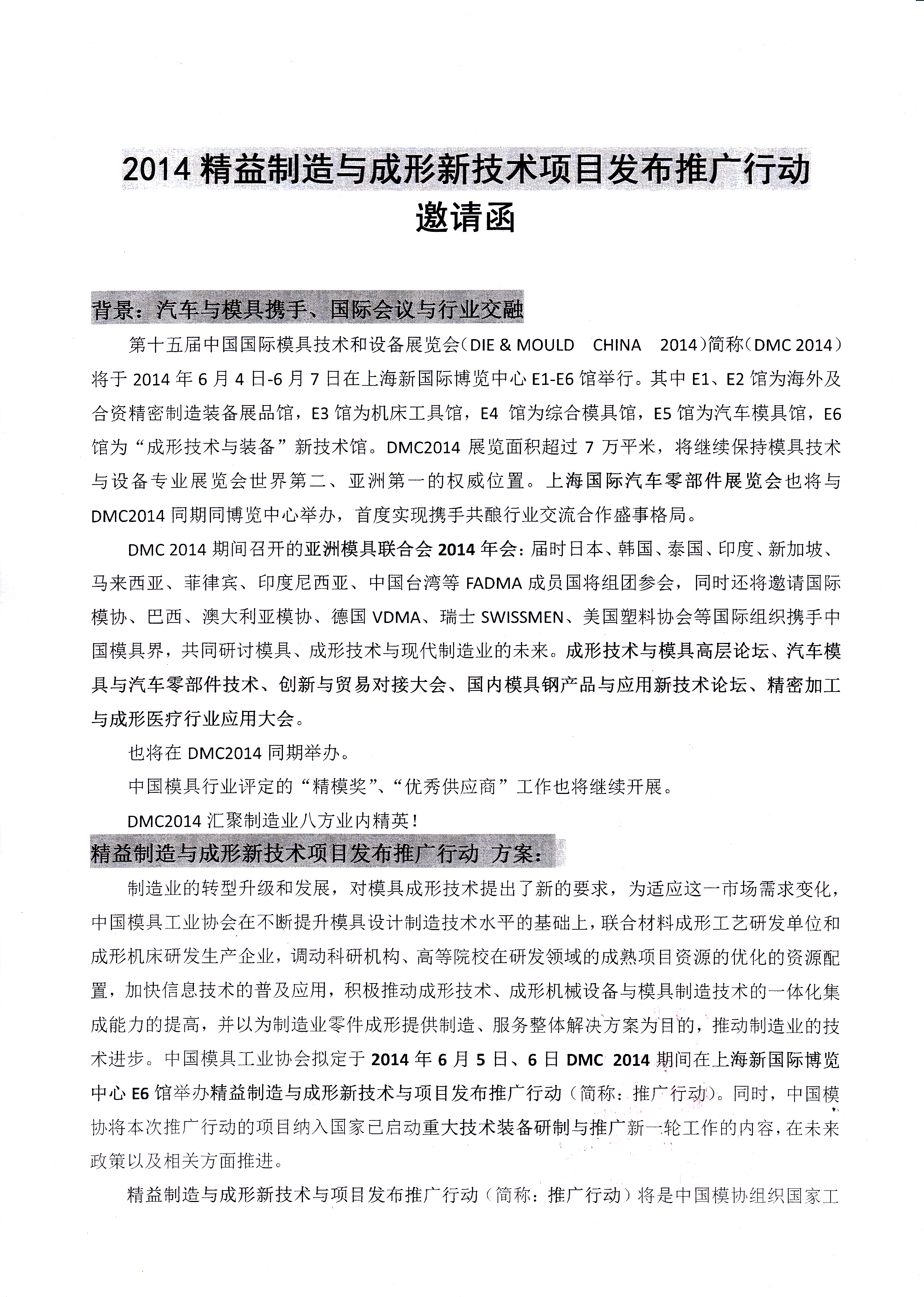 2014精益制造與成形新技術項目發布推廣行動邀請函