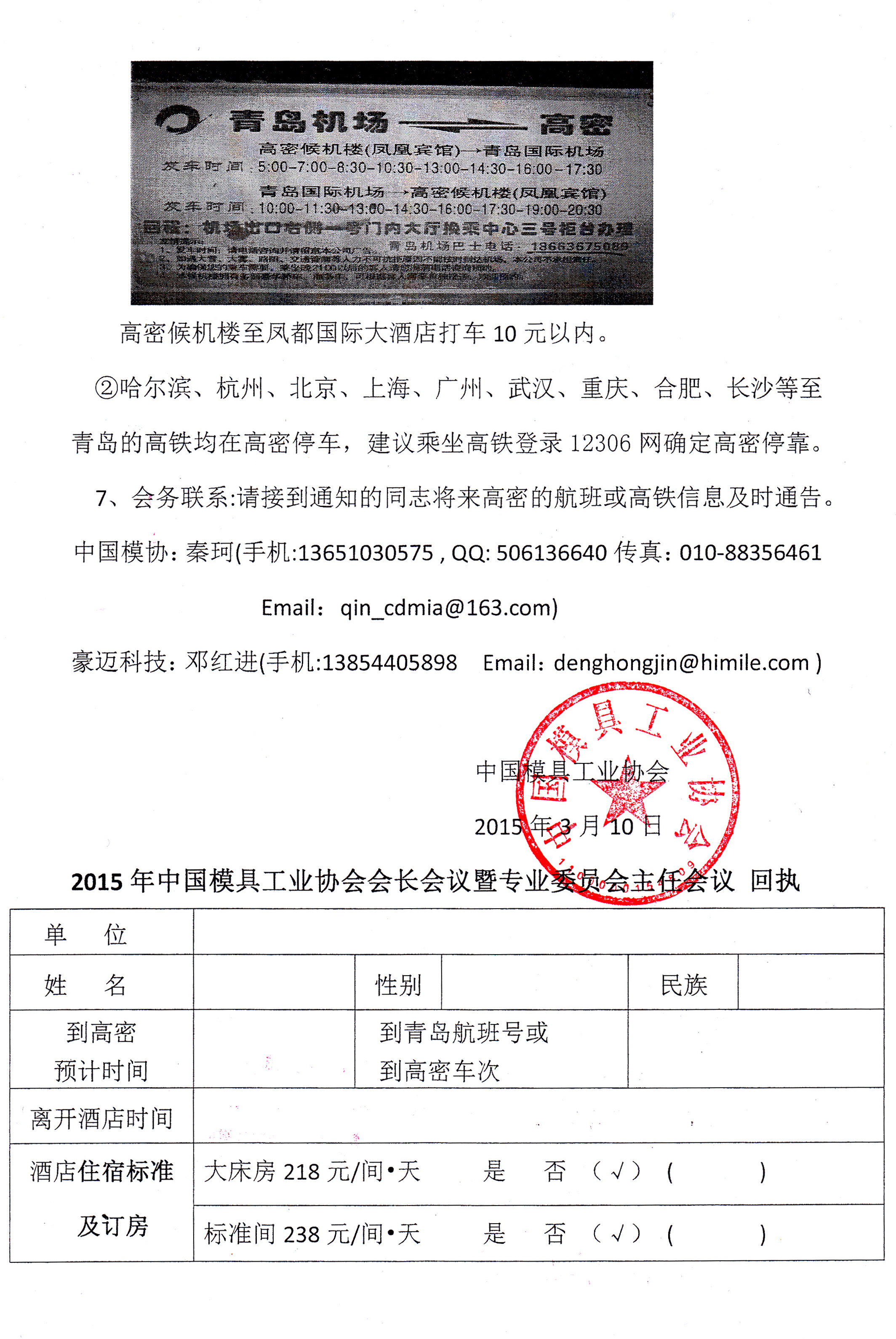 召開2015年中國模具工業協會會長會議暨專業委員會主任會議的通知