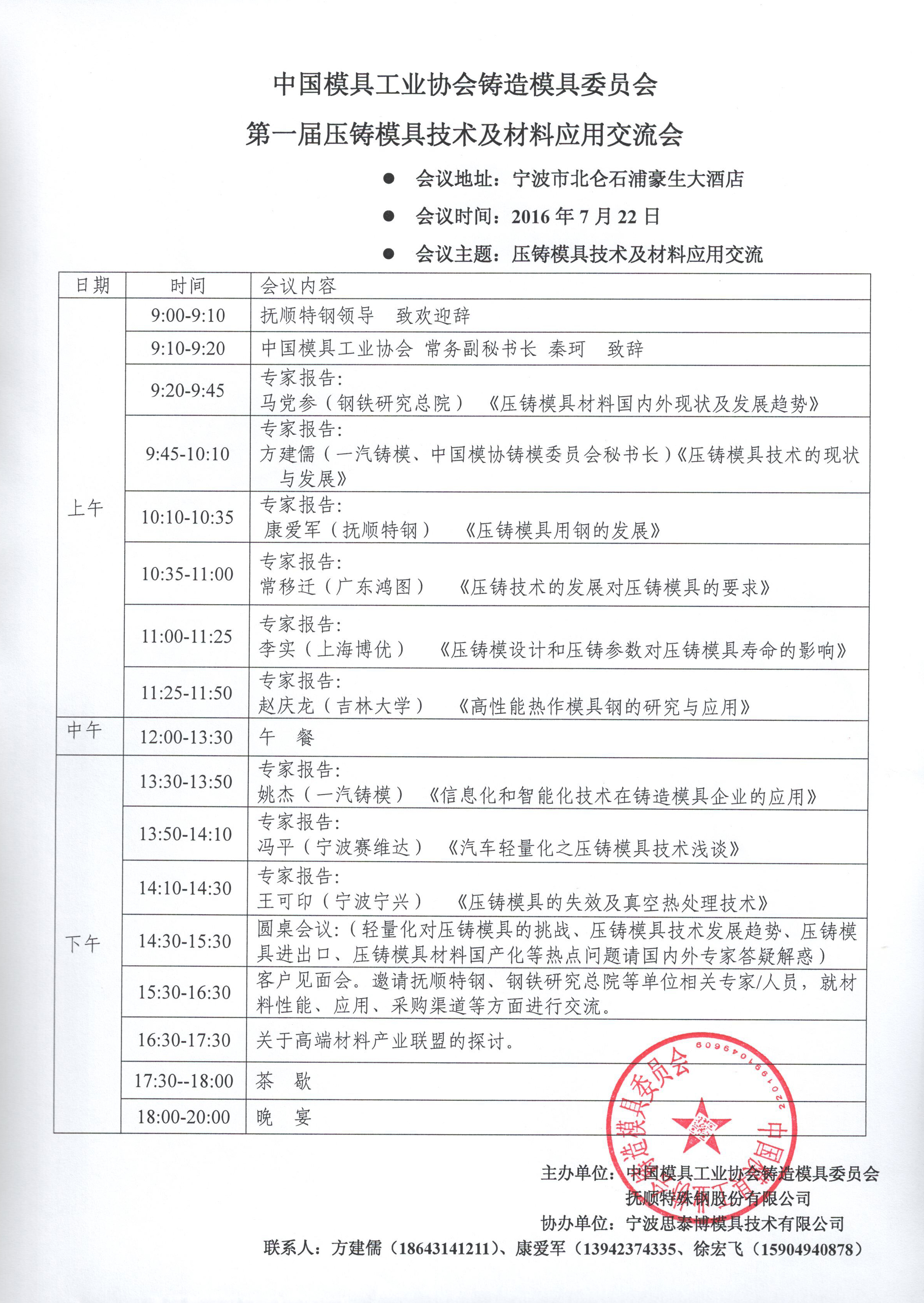 中國模具工業協會鑄造模具委員會第一屆壓鑄模具技術及材料應用交流會