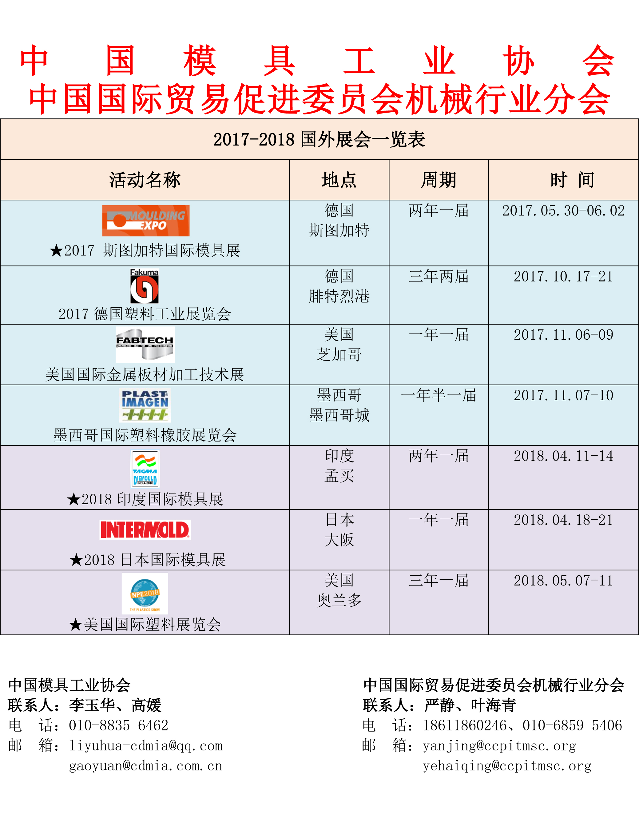 2017-2018國外展會一覽表