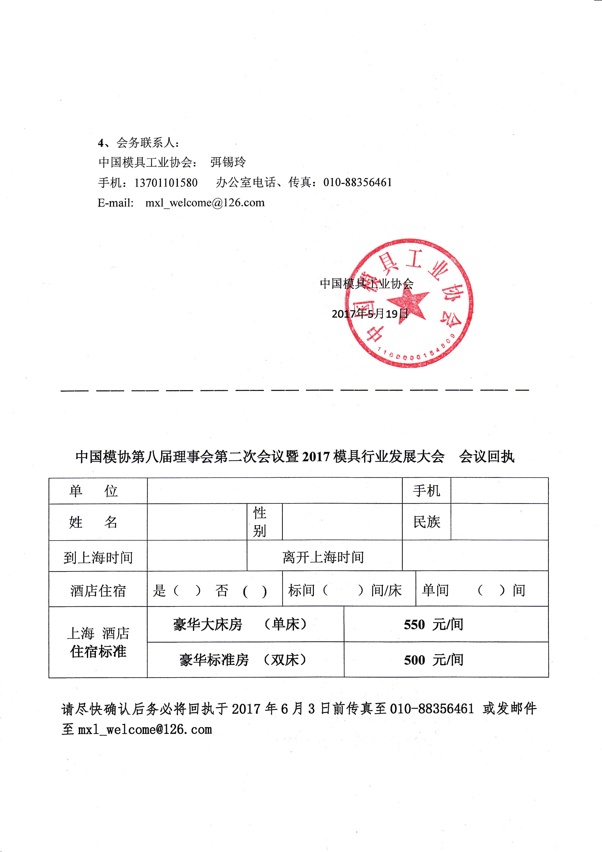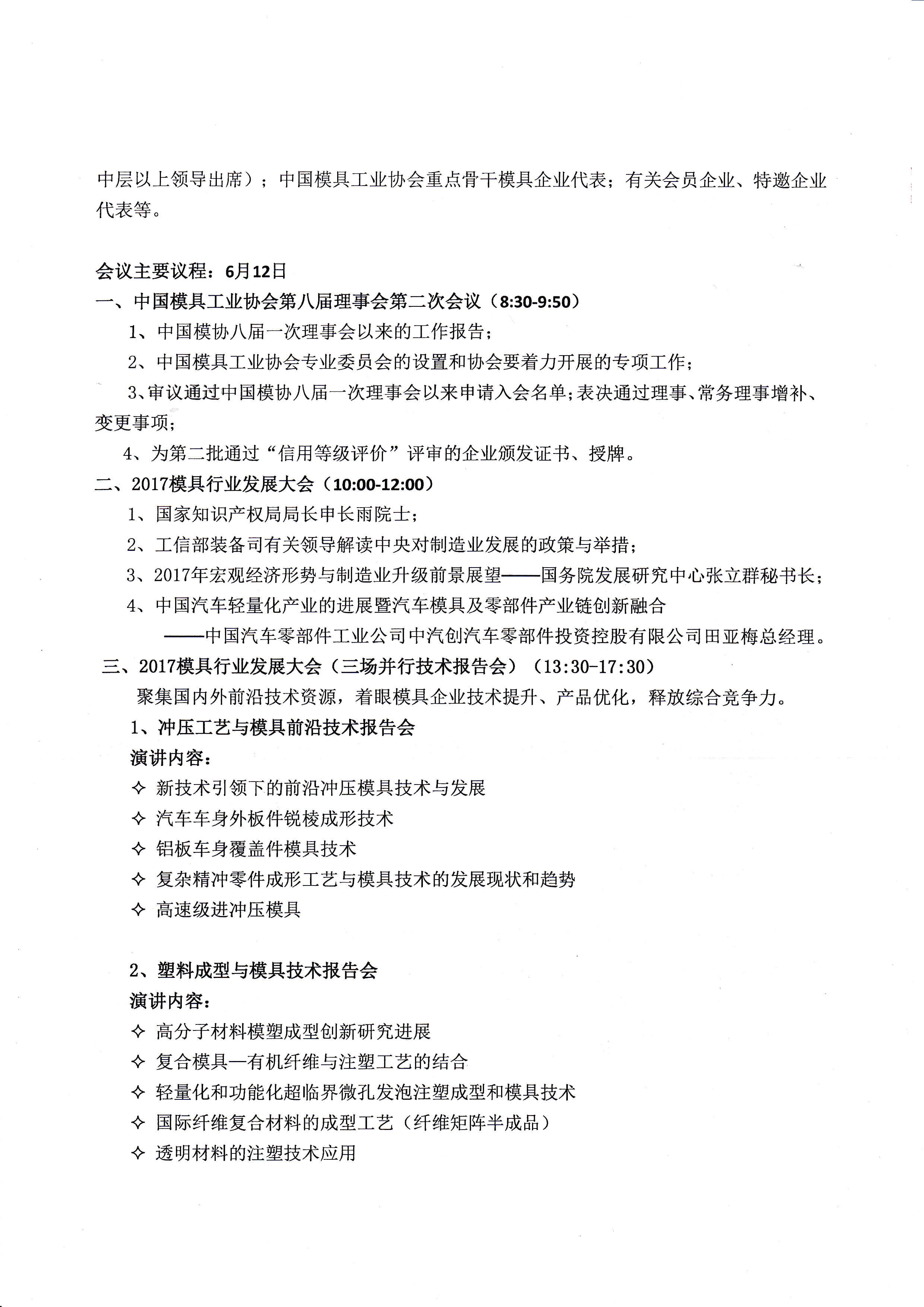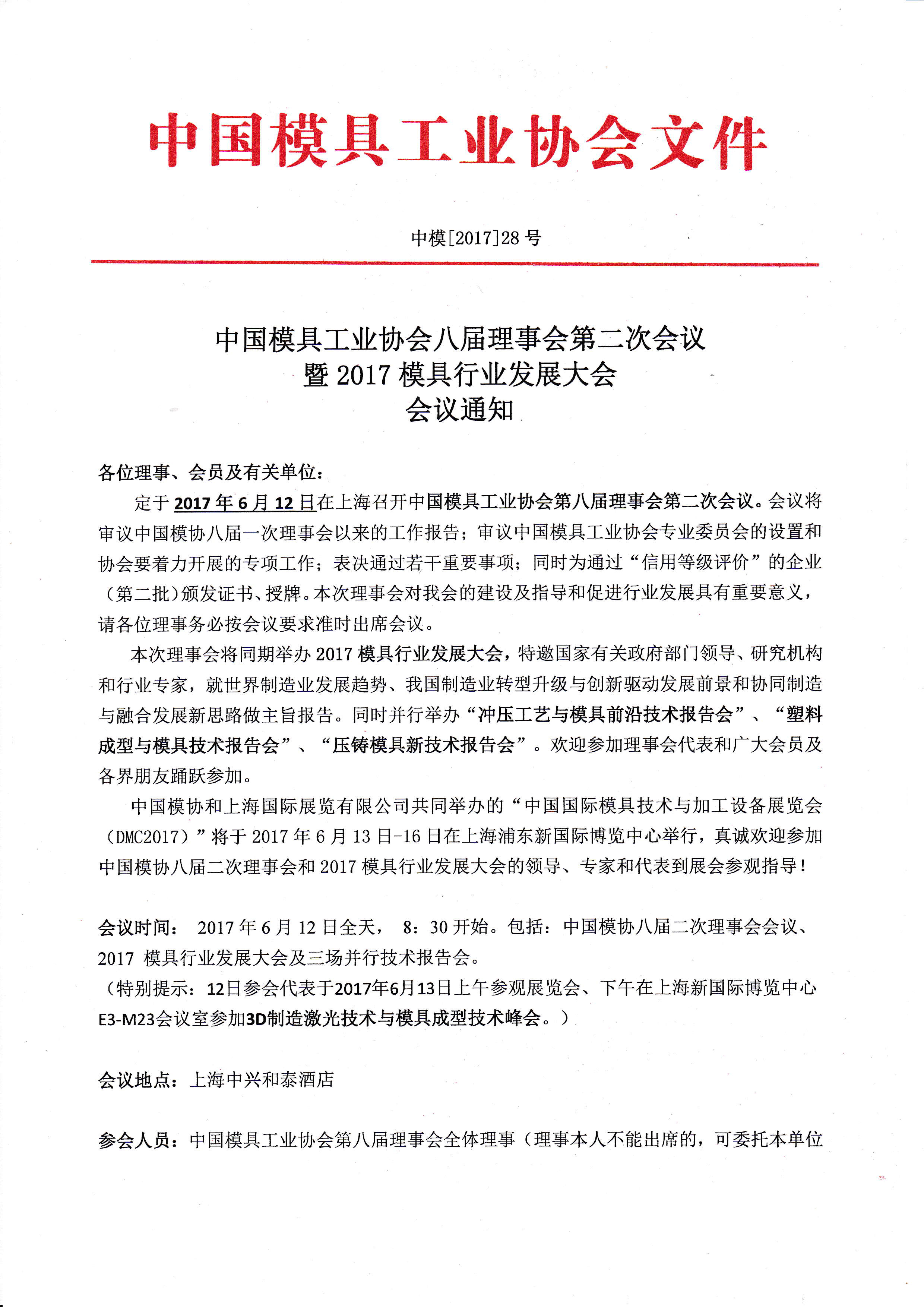 中國模具工業協會八屆理事會第二次會議暨2017模具行業發展大會會議通知
