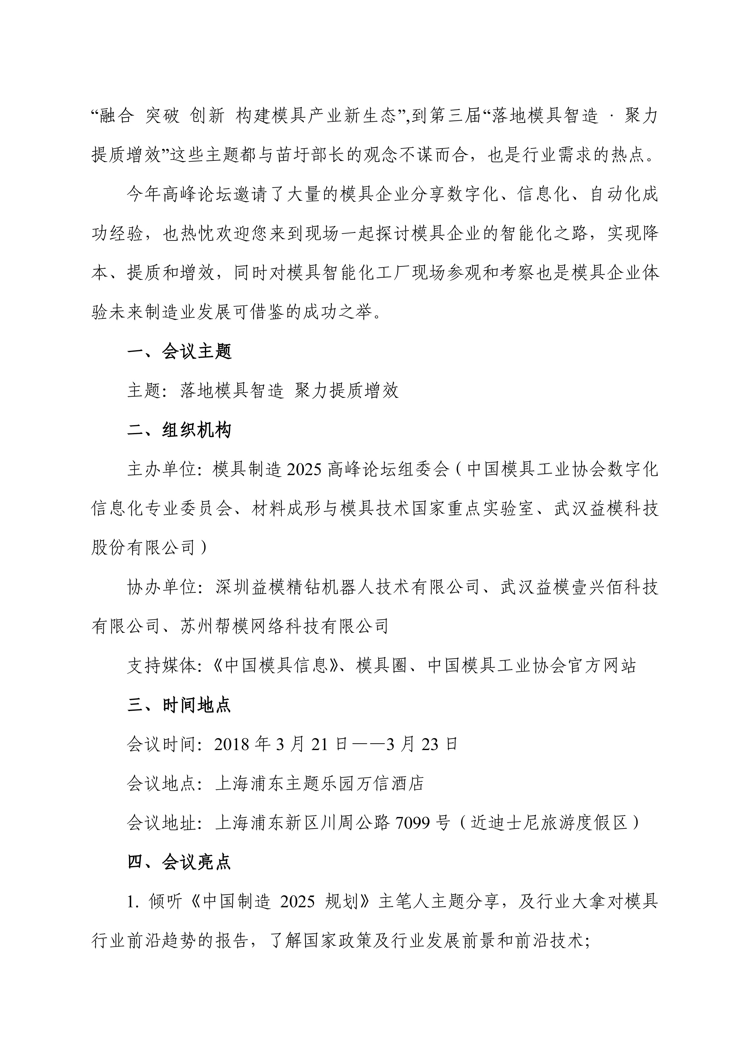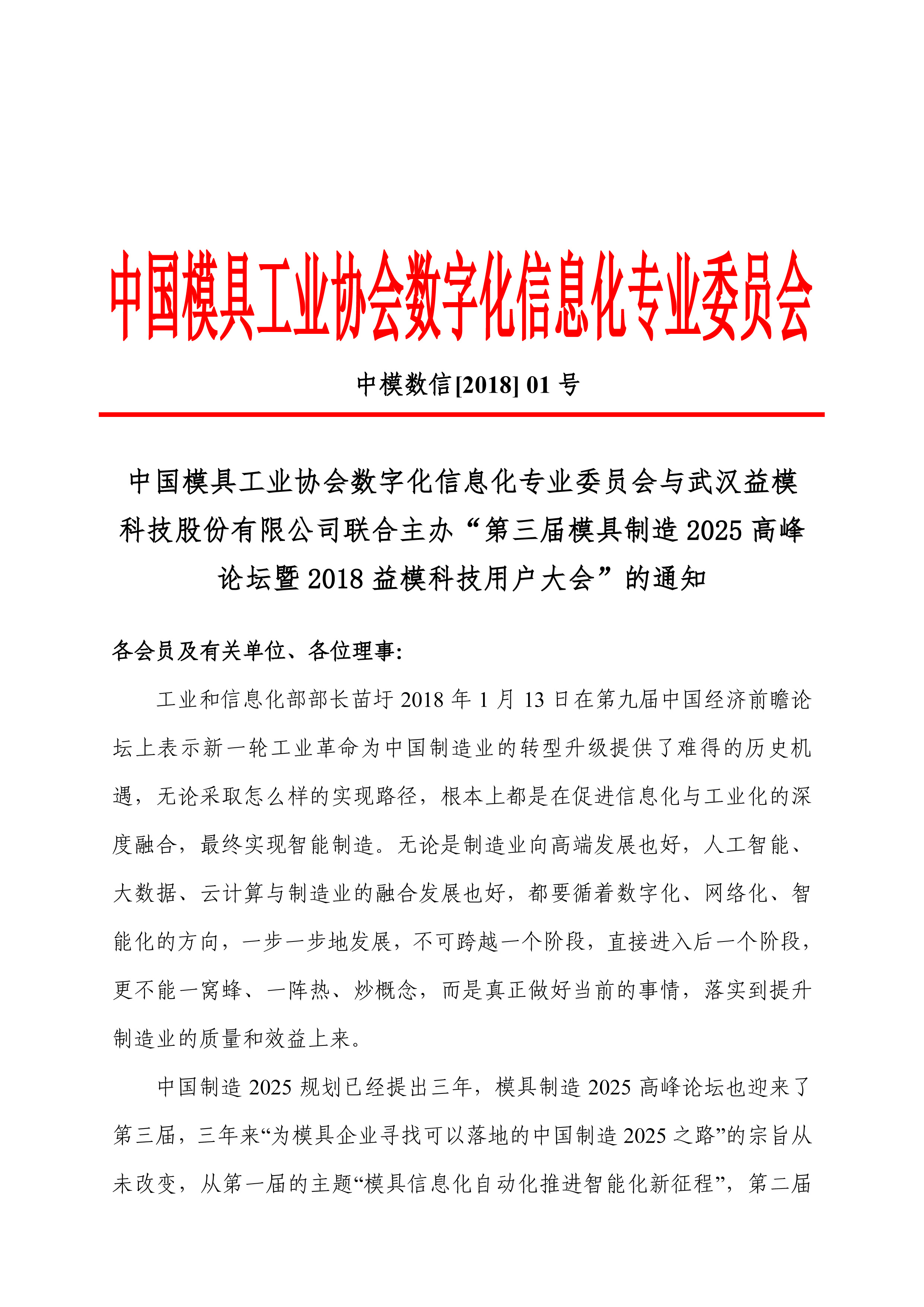 中國模具工業協會數字化信息化專業委員會與武漢益模科技股份有限公司聯合主辦“第三屆模具制造2025高峰論壇暨2018益??萍加脩舸髸钡耐ㄖ?/h3>