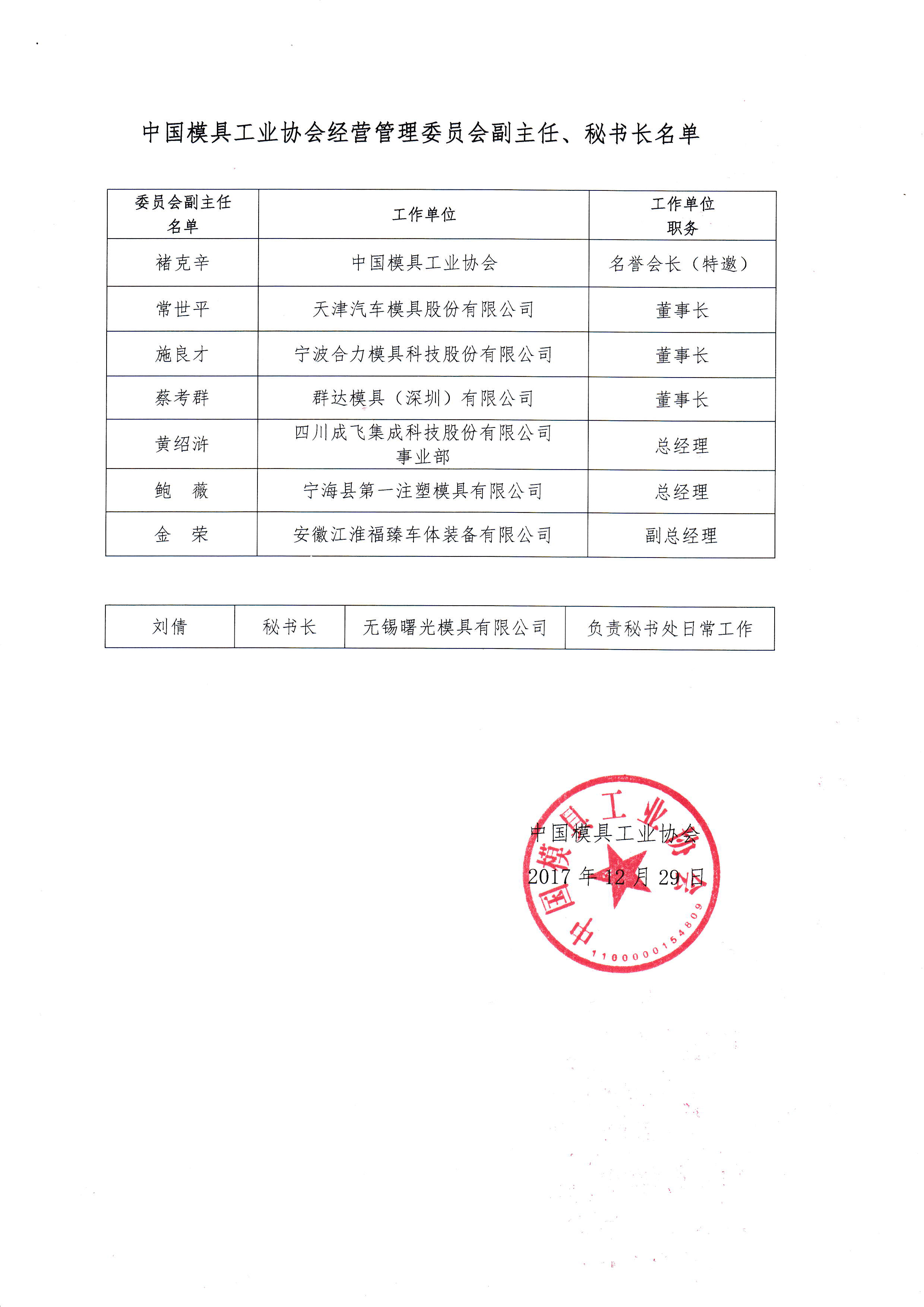 中國模具工業(yè)協(xié)會八屆理事會經(jīng)營管理委員會建制的批復