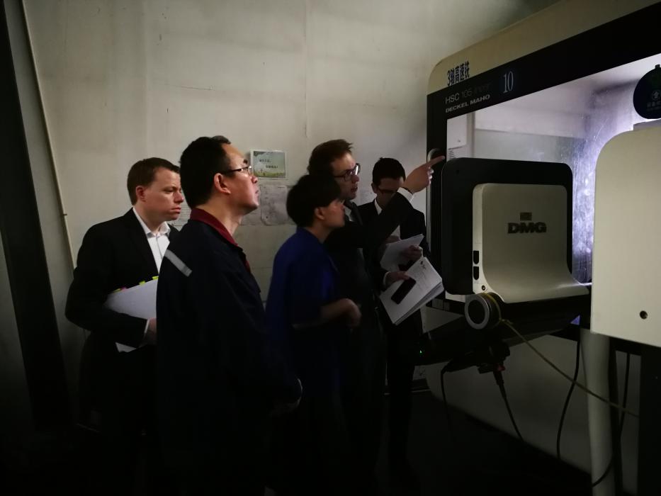 中午一行四人離開黃巖趕往寧海,走訪此次對標項目現場調研的終點站——寧波方正汽車模具有限公司,受到了方永杰董事長和郭建淼副總經理等人的熱情接待。調研生產流程的過程中,德國專家細致地詢問并記錄了公司生產相關的具體情況,并對公司的管理水平和設備水平做出了高度評價。?