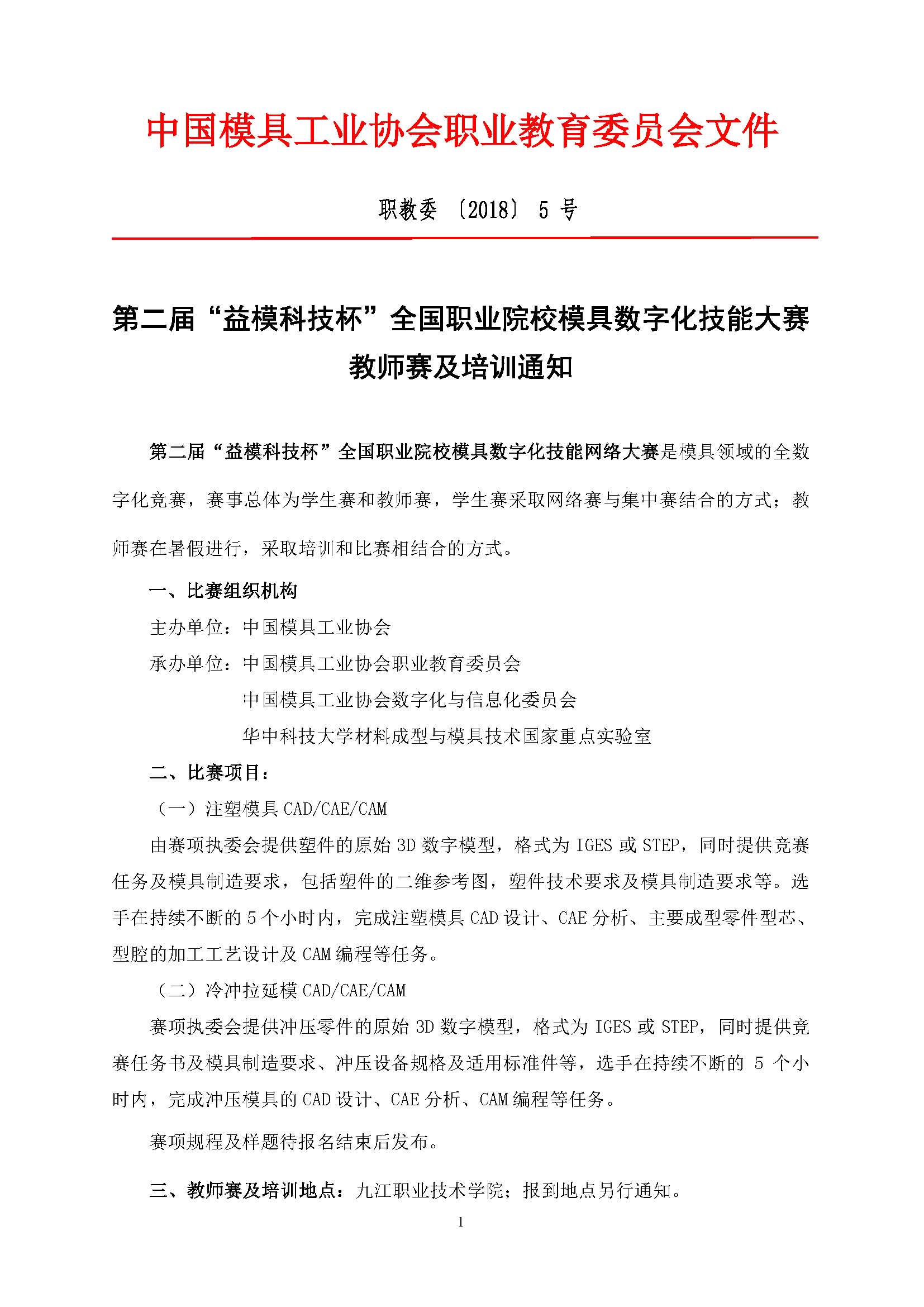 第二屆“益模科技杯”全國職業院校模具數字化技能大賽教師賽及培訓通知