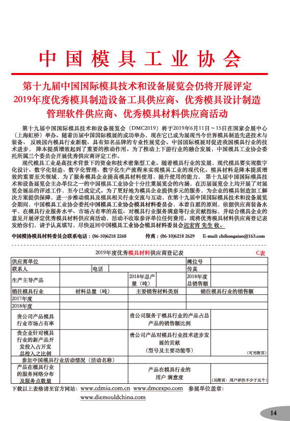 中國(guó)模具工業(yè)協(xié)會(huì)主辦唯一官方網(wǎng)站