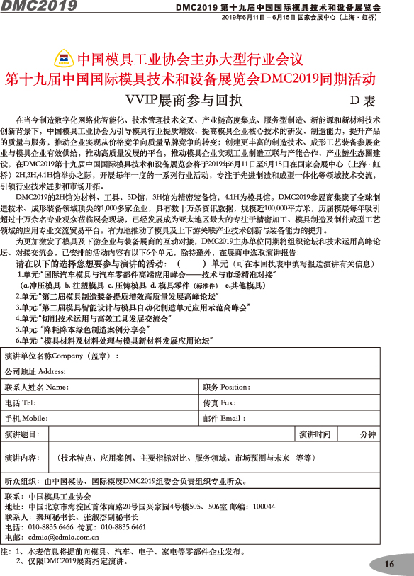 第十九屆中國(guó)國(guó)際模具技術(shù)和設(shè)備展覽會(huì)參展手冊(cè)