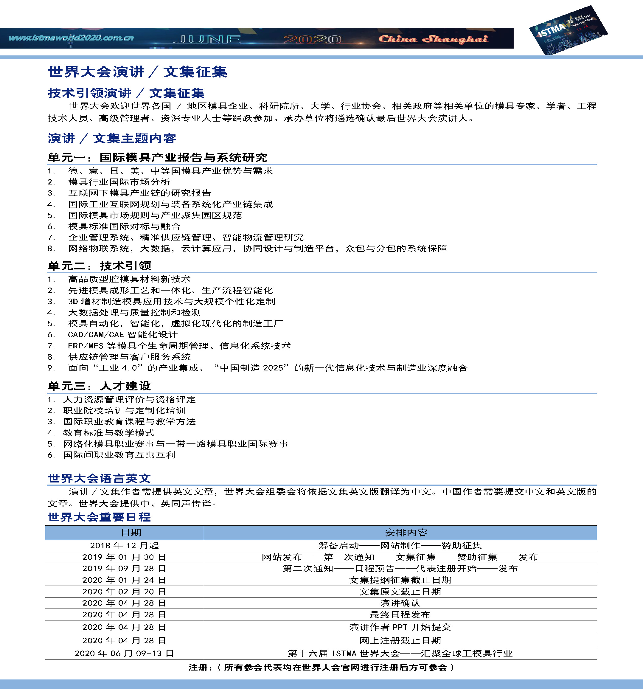 第十六屆ISTMA世界大會——匯聚全球工模具行業 文集、注冊邀請