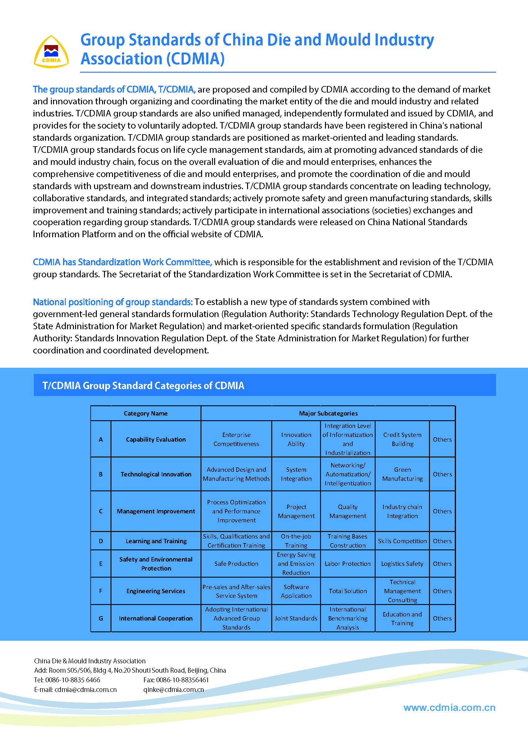 Group Standards of China Die and Mould Industry Association(CDMIA)