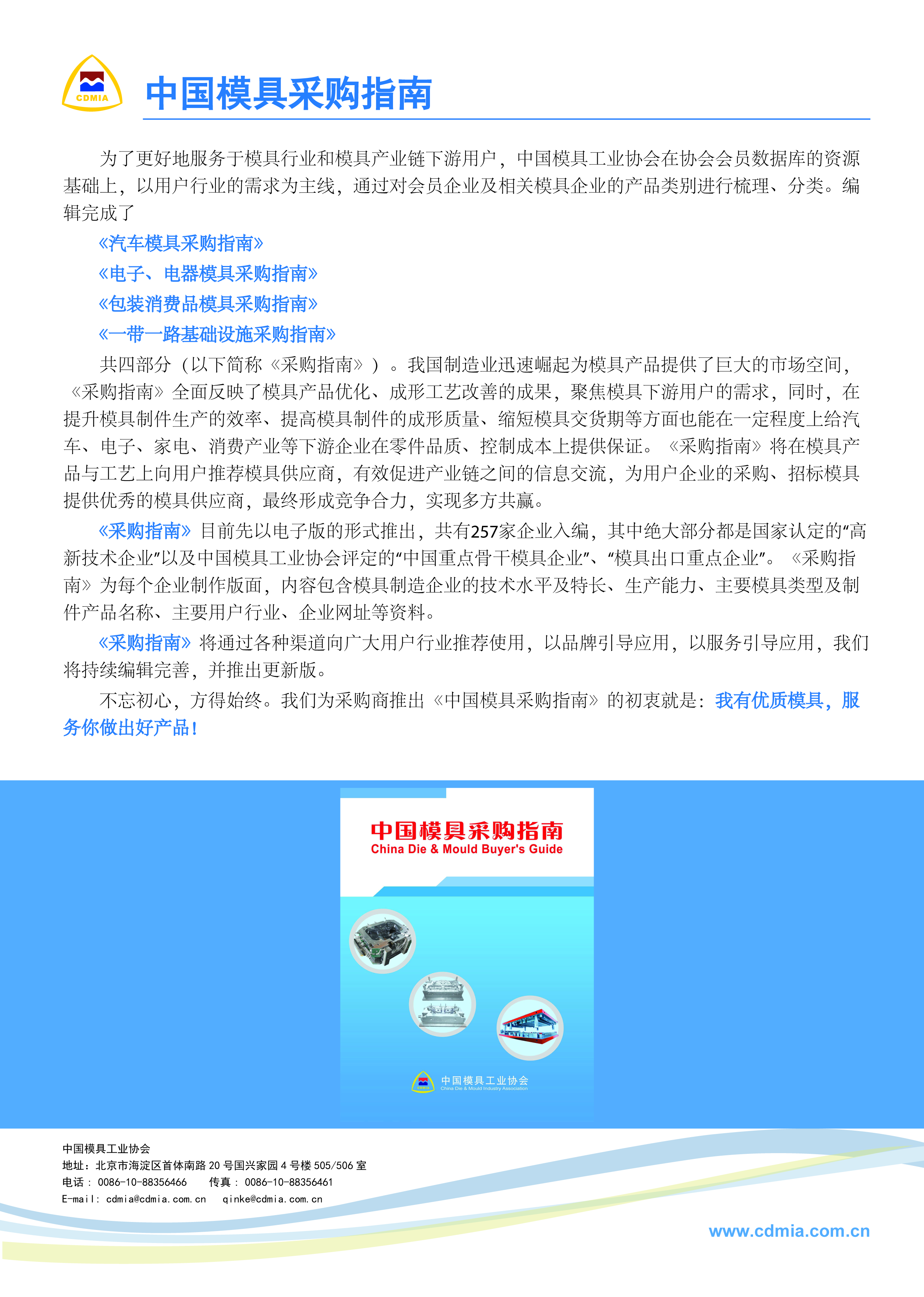 模具行業“十四五”發展綱要? ?100元/本? ? ?聯系電話:010-88356463