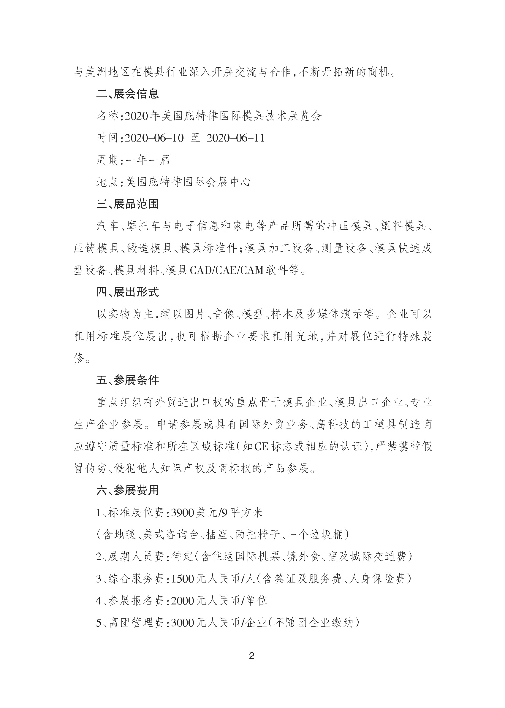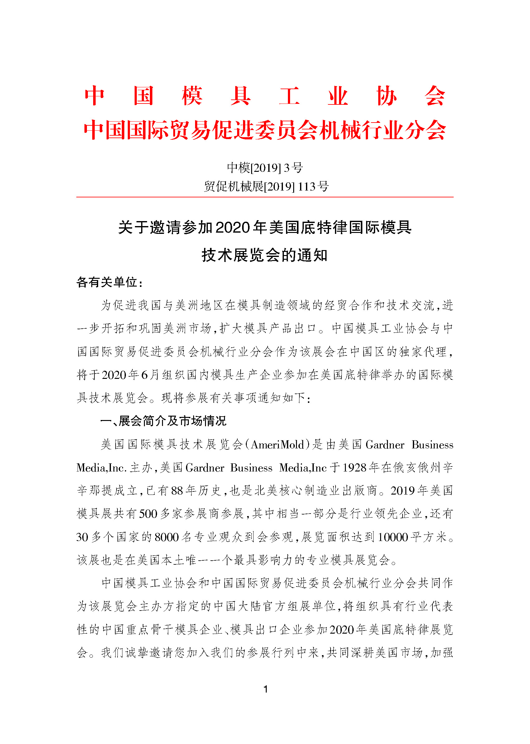 關(guān)于邀請(qǐng)參加2020年美國(guó)底特律國(guó)際模具技術(shù)展覽會(huì)的通知