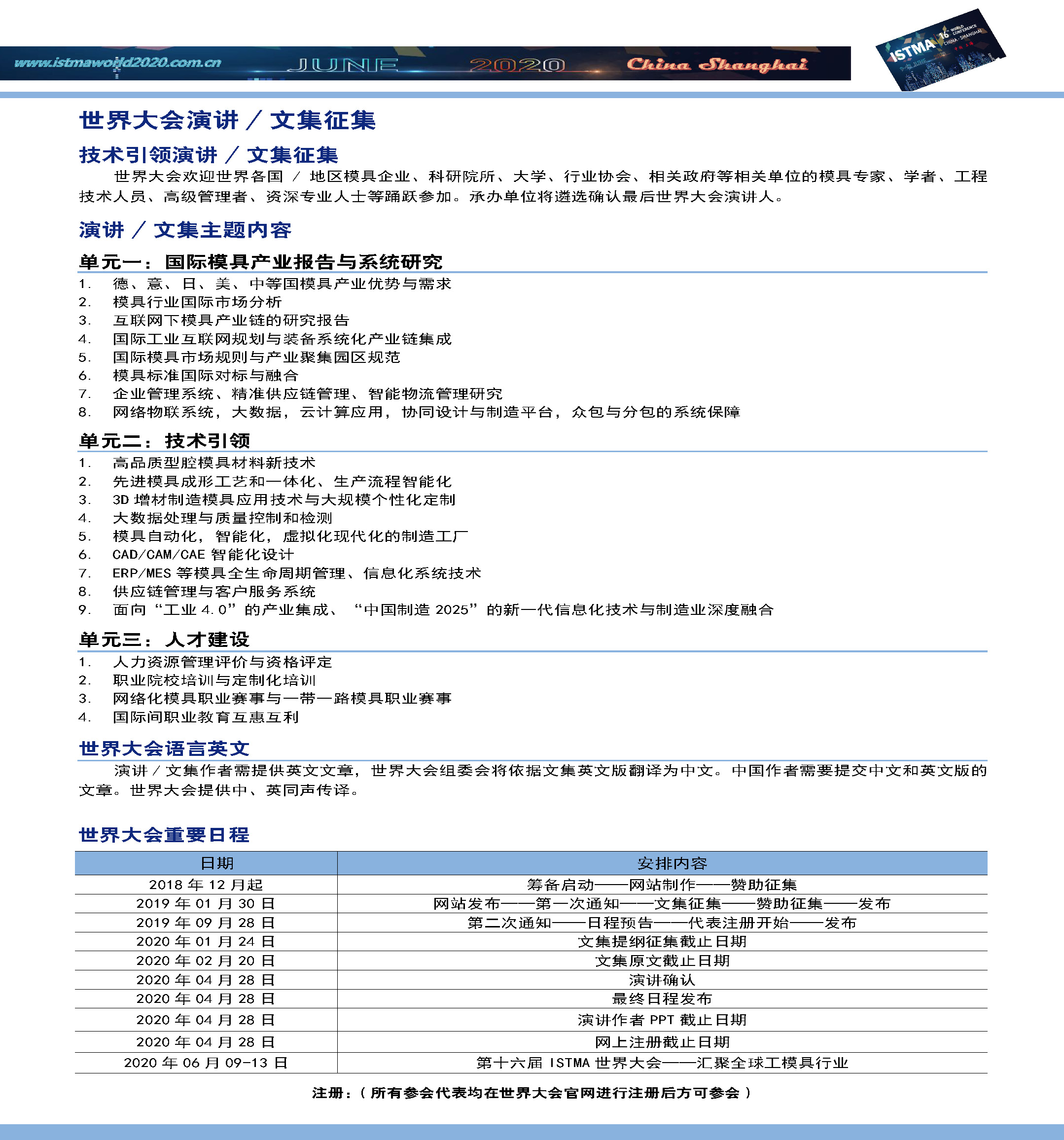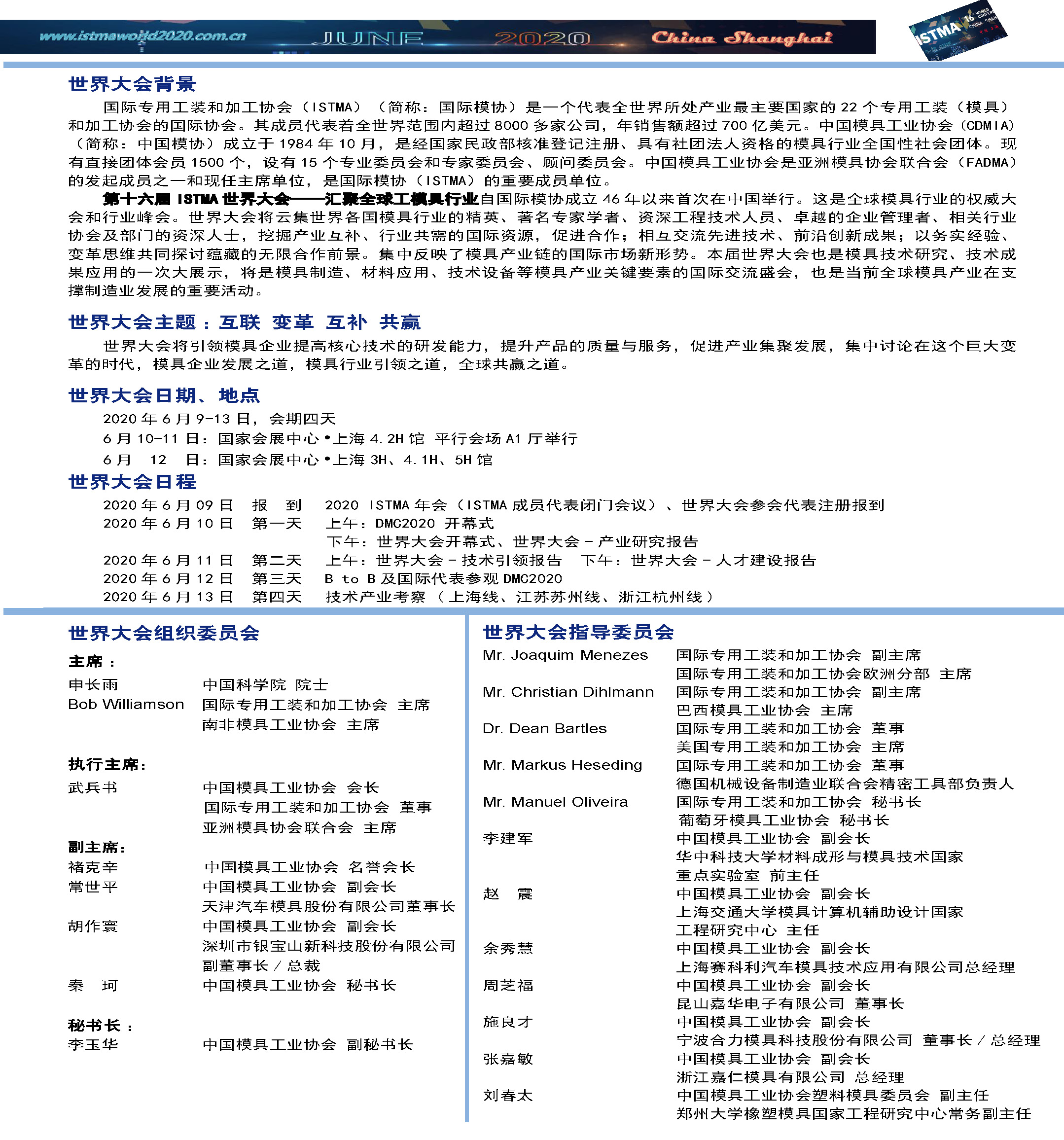 第十六屆ISTMA世界大會——匯聚全球工模具行業 文集、注冊邀請