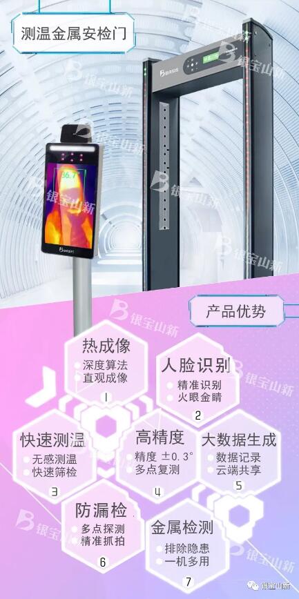 在疫情得到控制,經(jīng)濟引擎加速,返工、返校大潮到來之際,如何配合政府和企業(yè)做好復(fù)工、復(fù)課人員健康狀態(tài)的監(jiān)控,快捷準(zhǔn)確識別體溫,形成一人一檔的健康檔案,為社會提供更穩(wěn)妥的健康安全保障?銀寶山新迅速整合集團旗下子公司“美恩信息”的信息化開發(fā)技術(shù),“白狐設(shè)計”的工業(yè)設(shè)計能力,在最短的時間內(nèi)針對疫情需求精準(zhǔn)開發(fā)研制了以熱成像技術(shù)和云端大數(shù)據(jù)為基礎(chǔ)的智慧測溫門并充分利用自身雄厚的制造實力,以最快的速度投放市場,為廣大復(fù)工企業(yè)、學(xué)校、機關(guān)單位提供了無需等待、防漏檢、精準(zhǔn)測溫、軌跡可溯的健康監(jiān)測智慧解決方案。