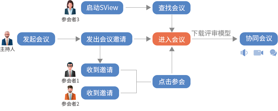 一個3D APP,一秒創建會議,一鍵快速分享,快速開會。SView協同設計評審解決方案支持參會者通過電腦、手機、Pad接入會議,大家基于產品3D模型與他人展開異地討論,每人都可以操作模型,查看每個細節,在此過程中可以進行文本、語音、視頻等方式的交流,高效地完成企業內外的設計協同 。
