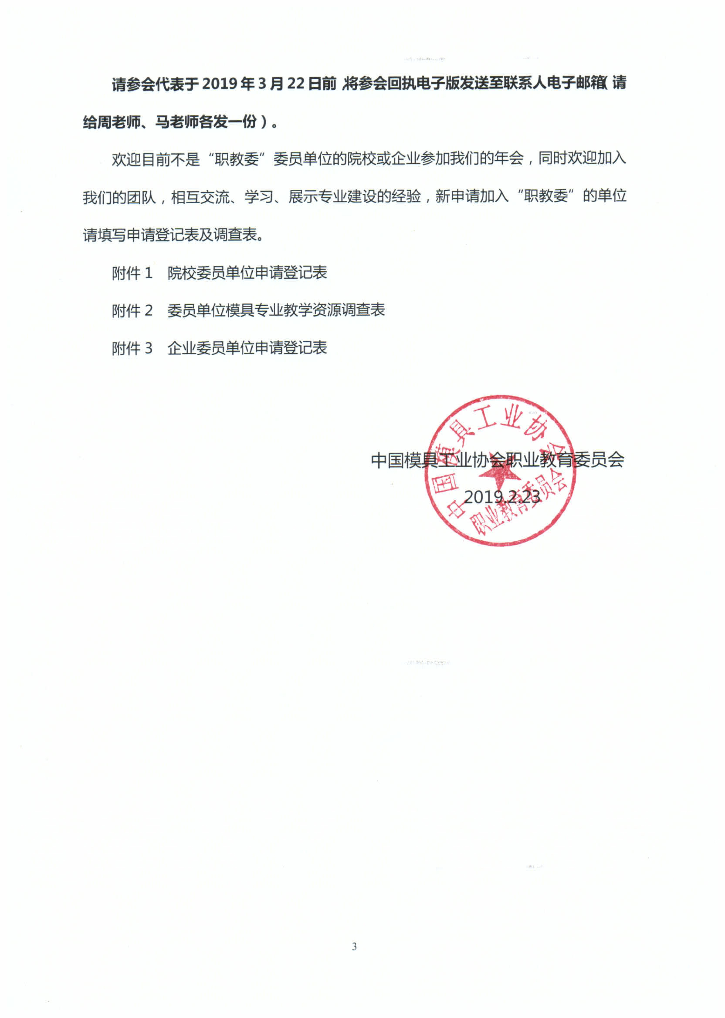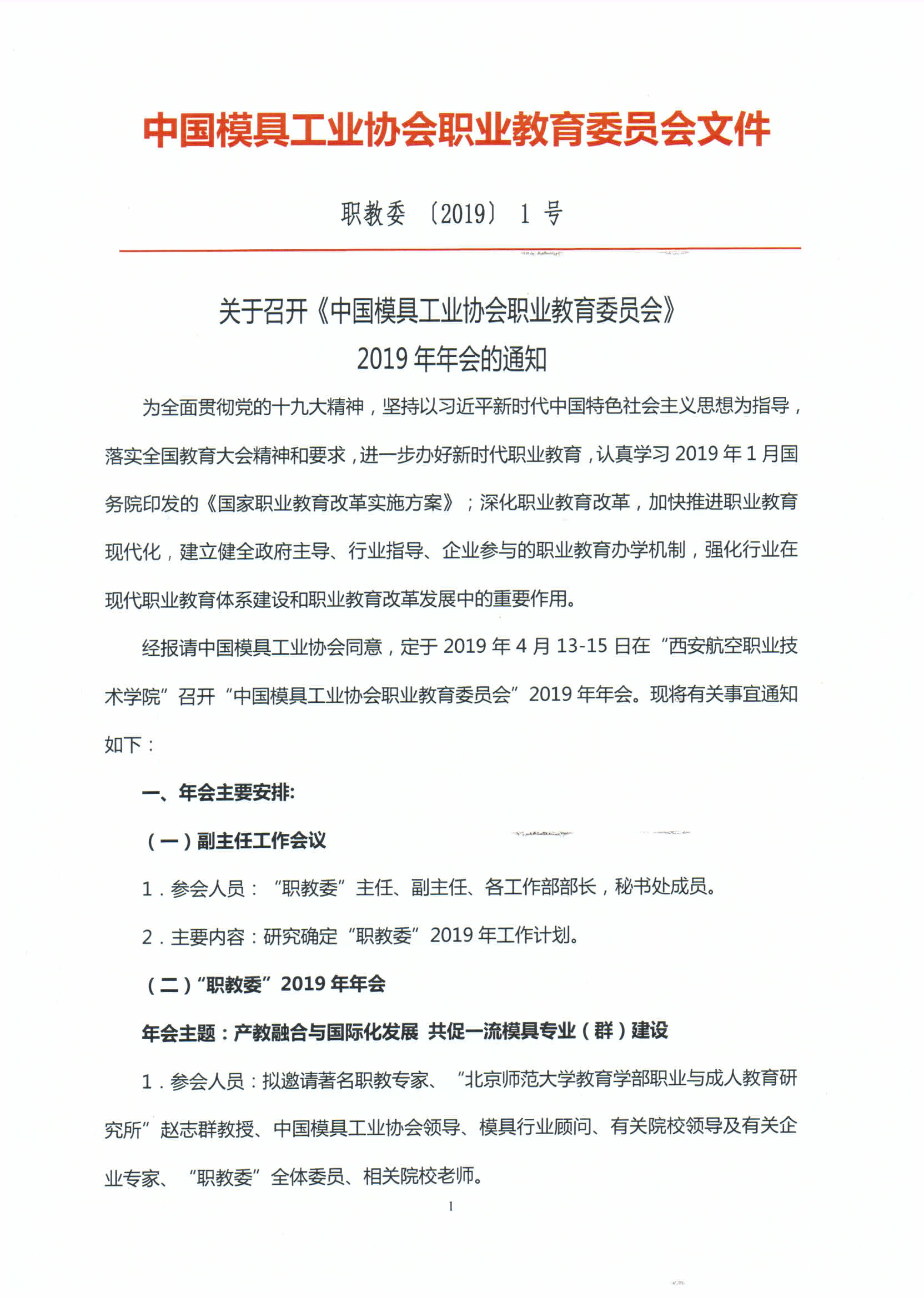 關于召開《中國模具工業(yè)協(xié)會職業(yè)教育委員會》2019年年會的通知
