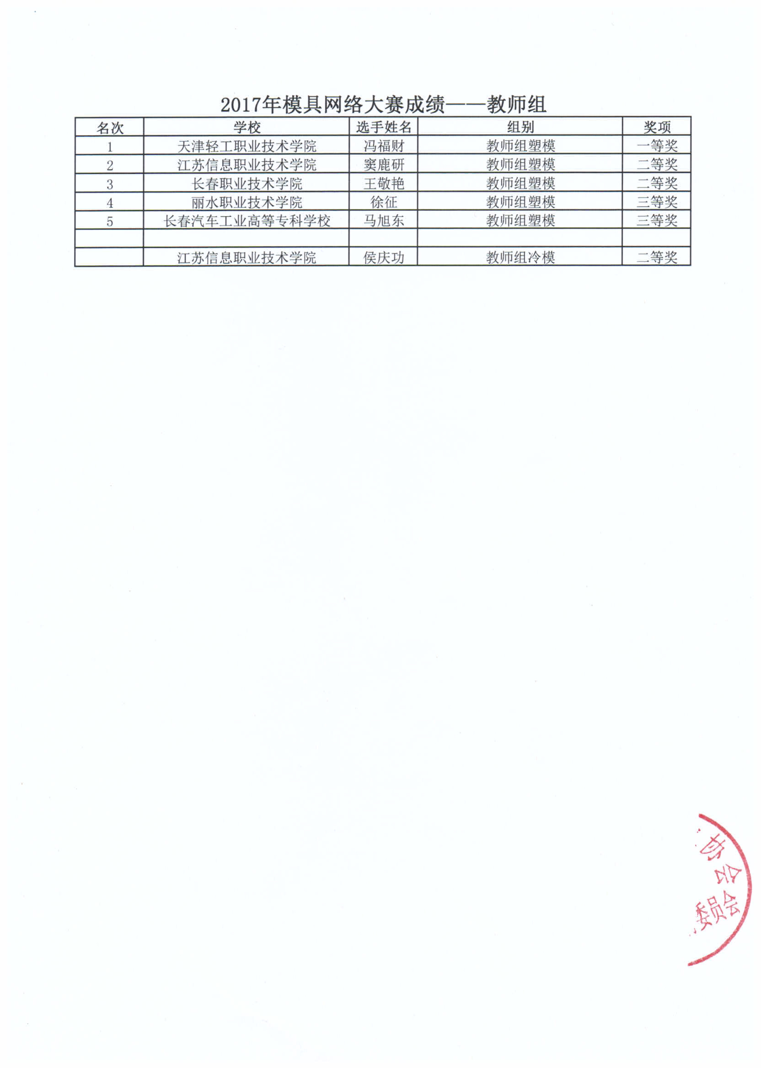 2017年模具網絡大賽成績