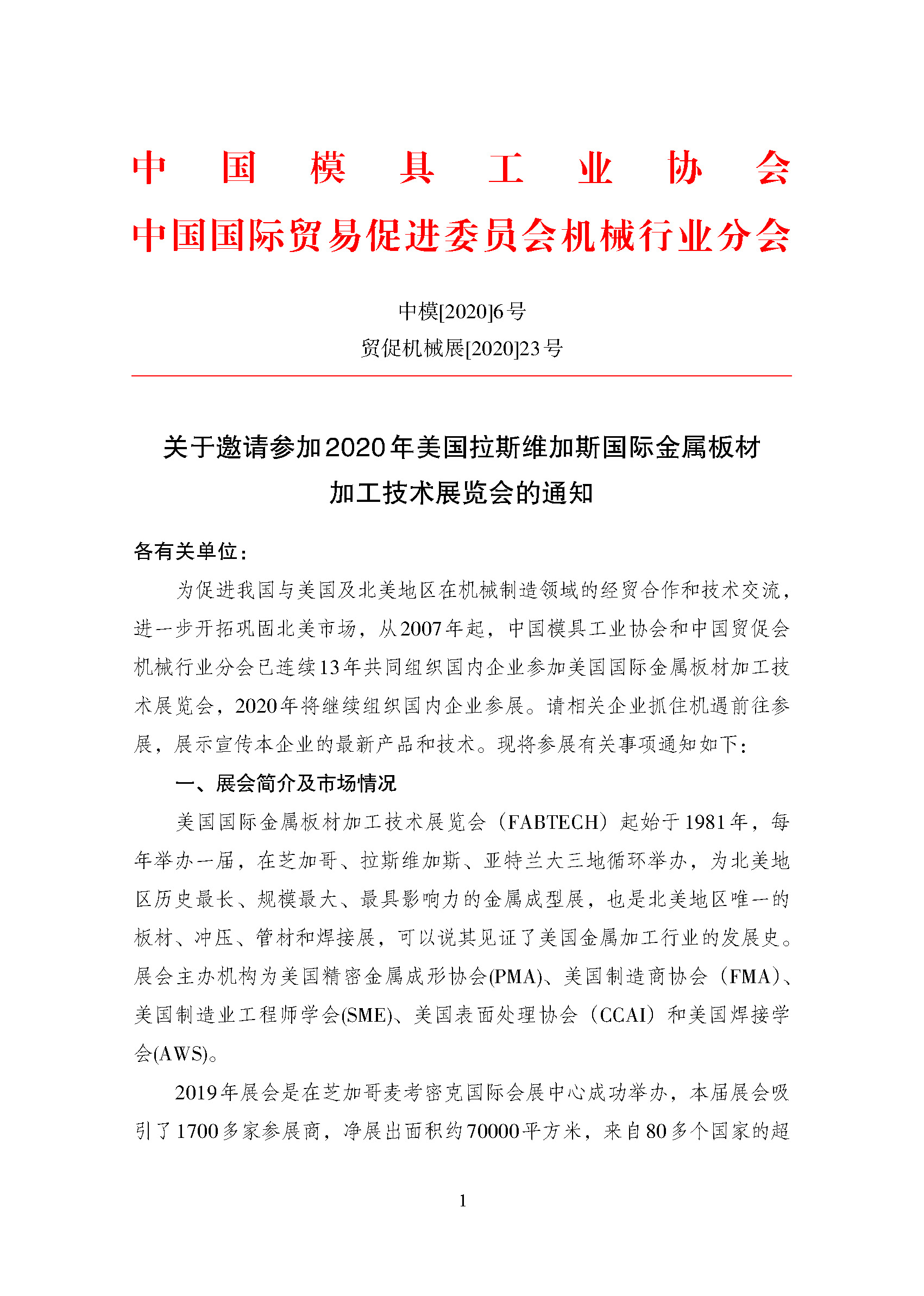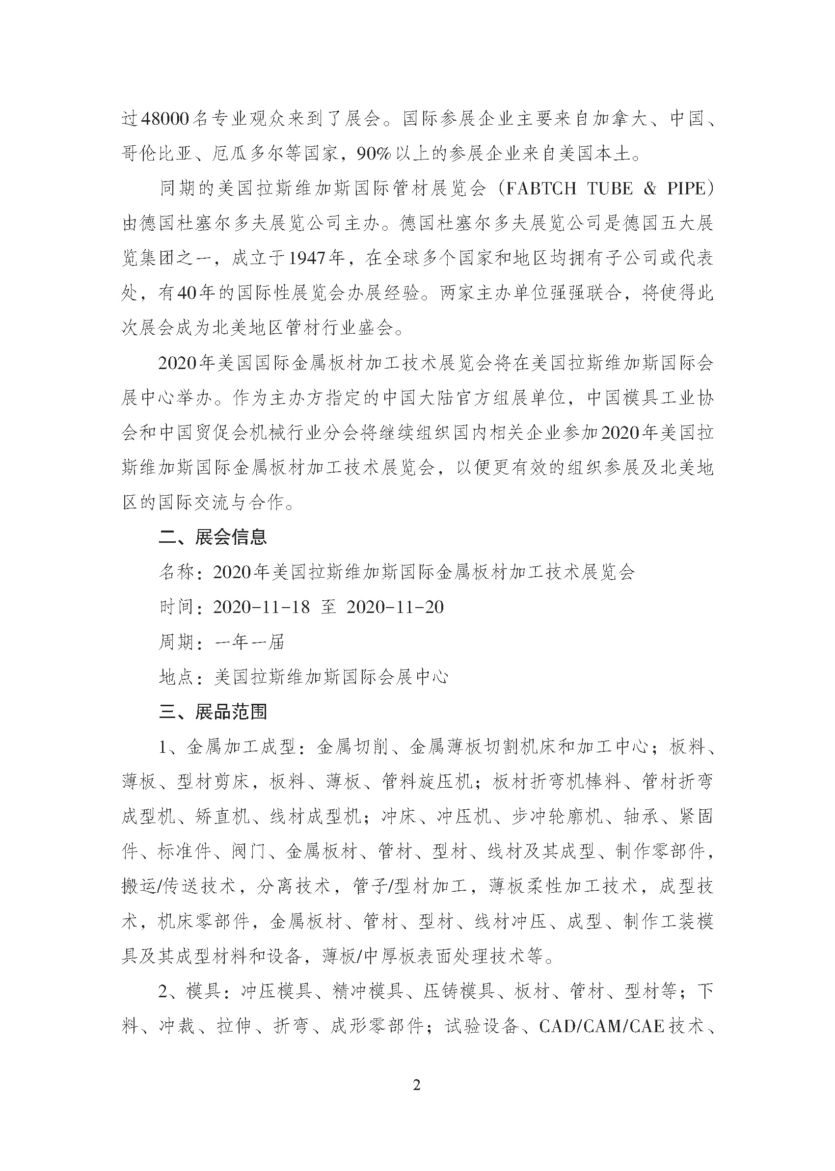 關(guān)于邀請參加2020年美國拉斯維加斯國際金屬板材加工技術(shù)展覽會的通知