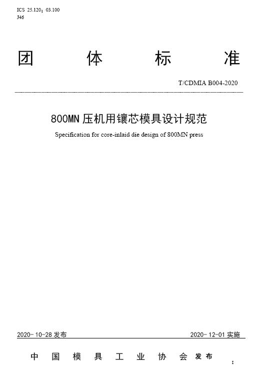 中國模協標準B004-800MN壓機用鑲芯模具設計規范-2020
