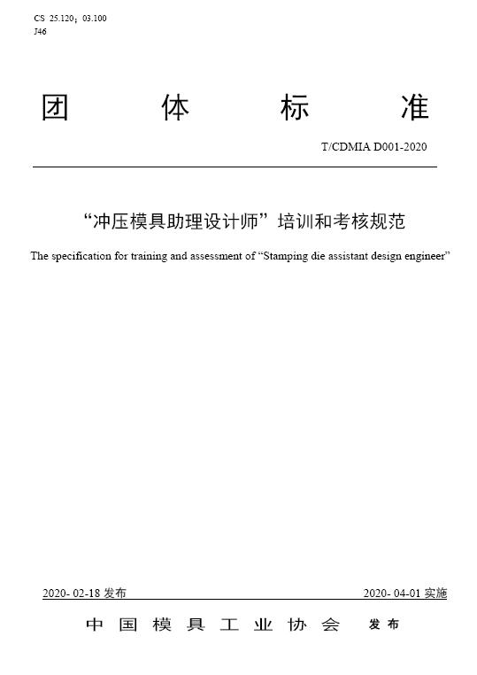 中國模協標準D001-沖壓模具助理設計師培訓和考核規范-2020
