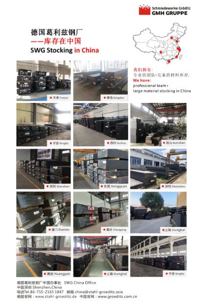 德國葛利茲鋼廠擁有全球最大的電渣重熔生產線之一,可生產重量達84噸的鋼錠。葛利茲鋼材在中國的長期庫存為20000噸,精密鍛造鋼材尺寸可達2000x1000xLmm,可滿足塑膠、壓鑄不同模具行業的需求。