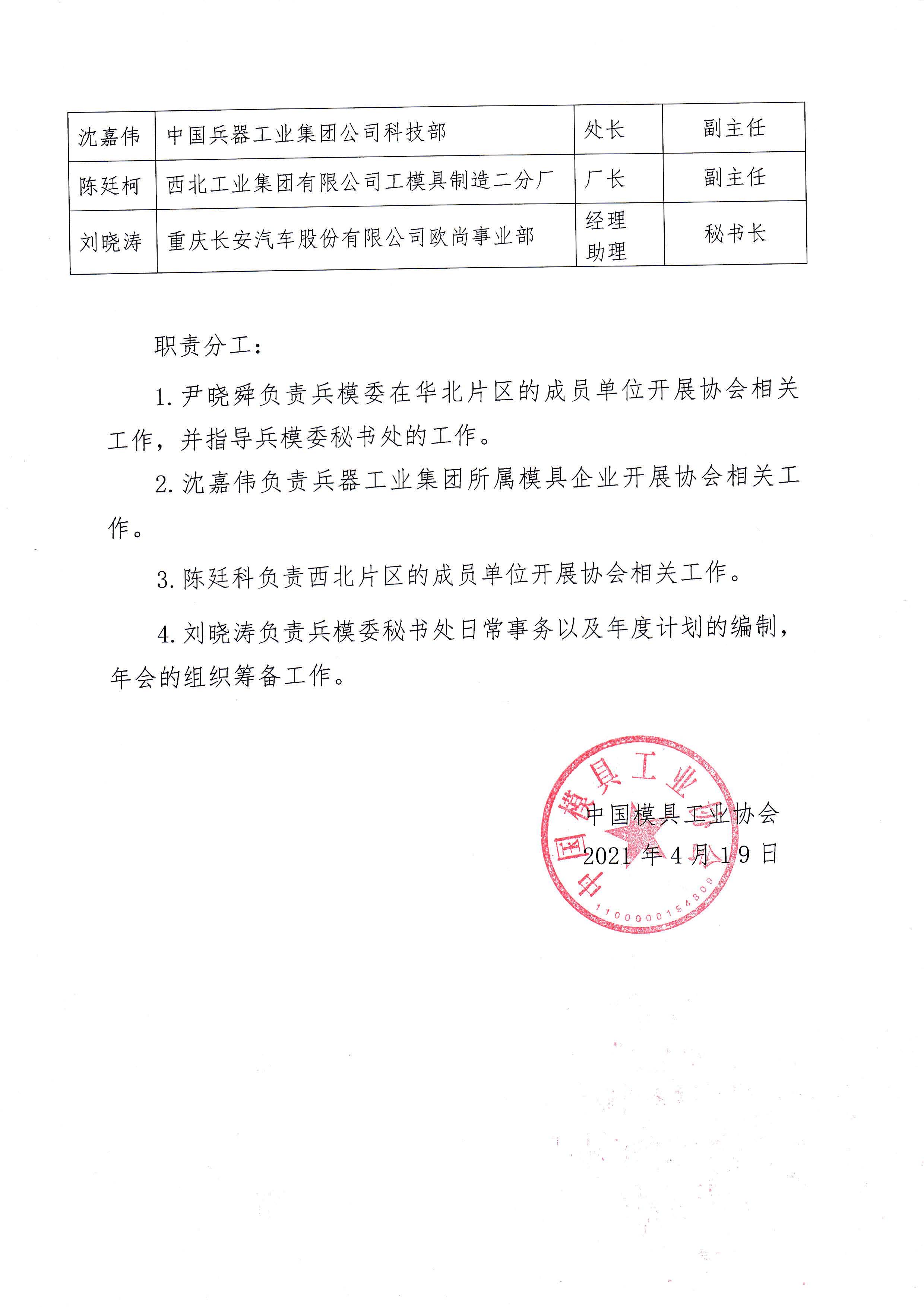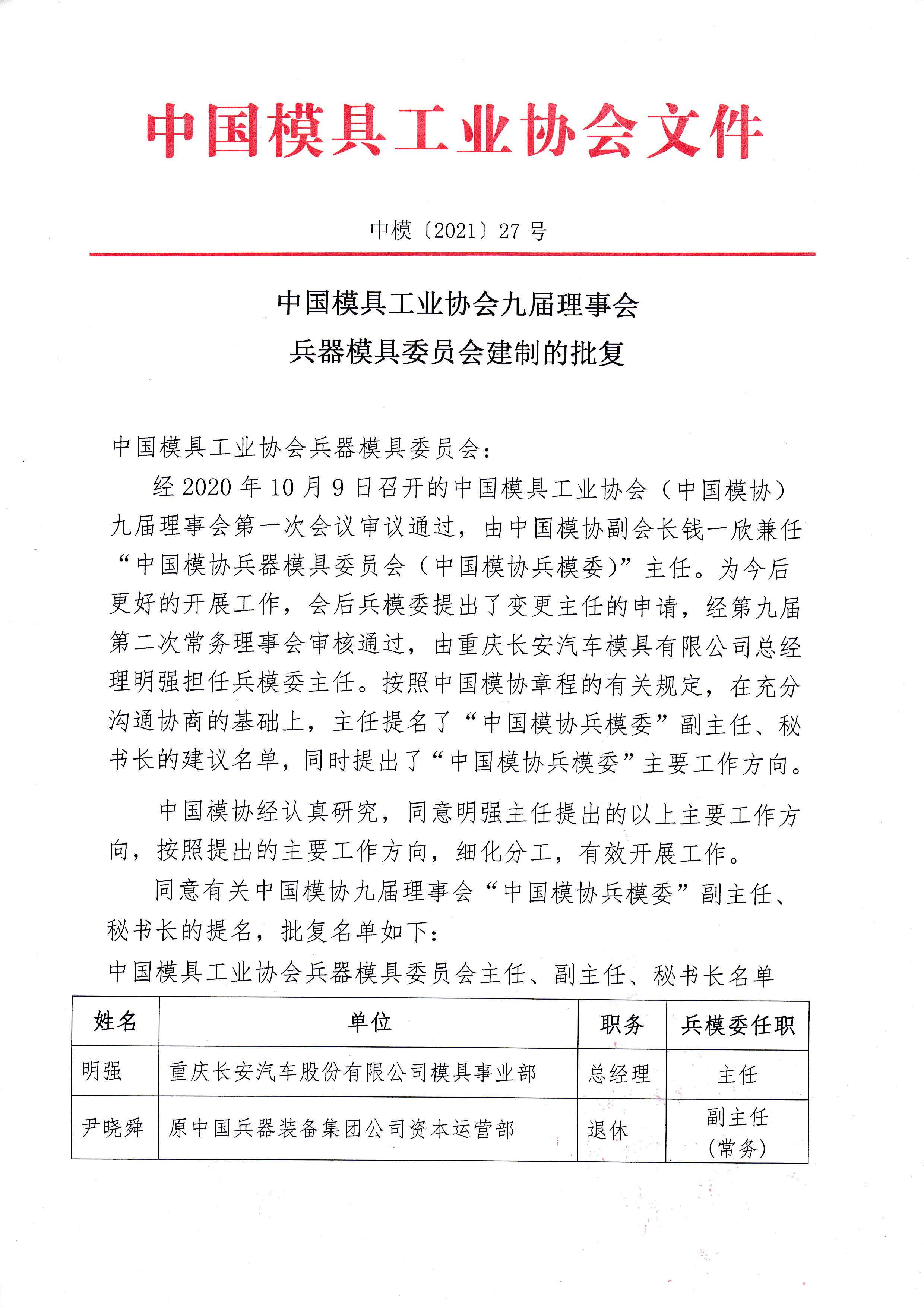 第九屆理事會(huì)兵器模具委員會(huì)建制的批復(fù)