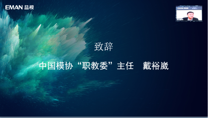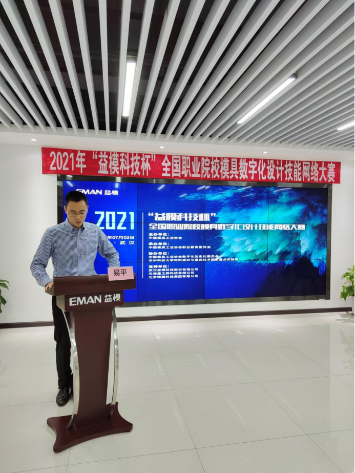 中國模具工業(yè)協(xié)會數(shù)字信息化委員會主任\武漢益??萍脊煞萦邢薰径麻L易平先生致辭。易董事長代表武漢益??萍脊煞萦邢薰救w員工對各位領導老師同學的參加表示誠摯的歡迎。然后對益模公司做了簡單的介紹,多年來益模一直秉承理論與實踐相結合的理念,將15年在企業(yè)技術制造應用中的沉淀融入到職業(yè)教育領域,與國內多個一流職業(yè)院校合作,打造一系列智能制造實訓室,憑借申報的拉延模具數(shù)字化設計項目,成功入選第4批1+X證書的試點。積極進行教學模式探索,建立適應新形勢下的職業(yè)崗位標準,為院校教學課程設置及崗位職業(yè)能力培養(yǎng)提供有效依據(jù),從而實現(xiàn)產教深度融合。
