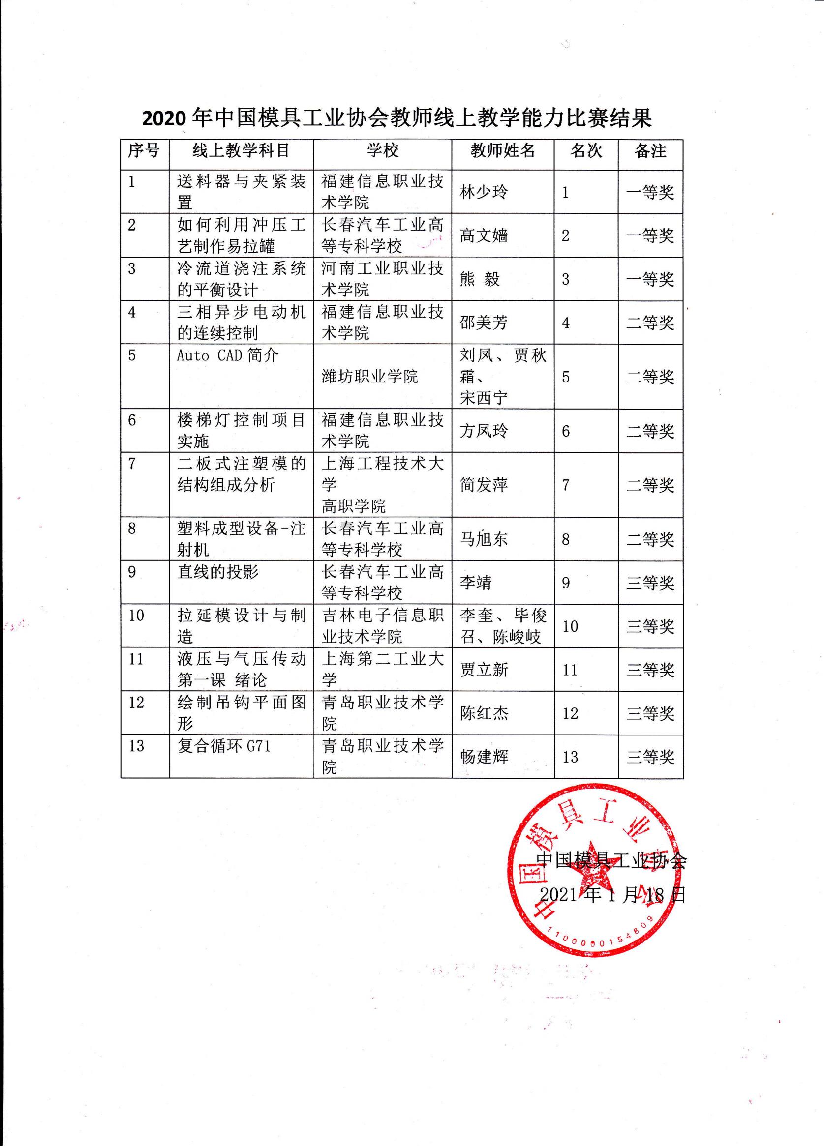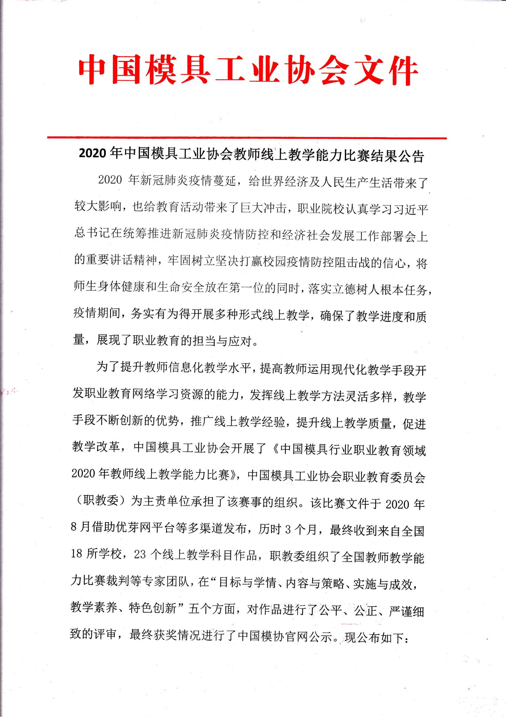 2020年中國模具工業(yè)協(xié)會教師線上教學能力比賽結果公告