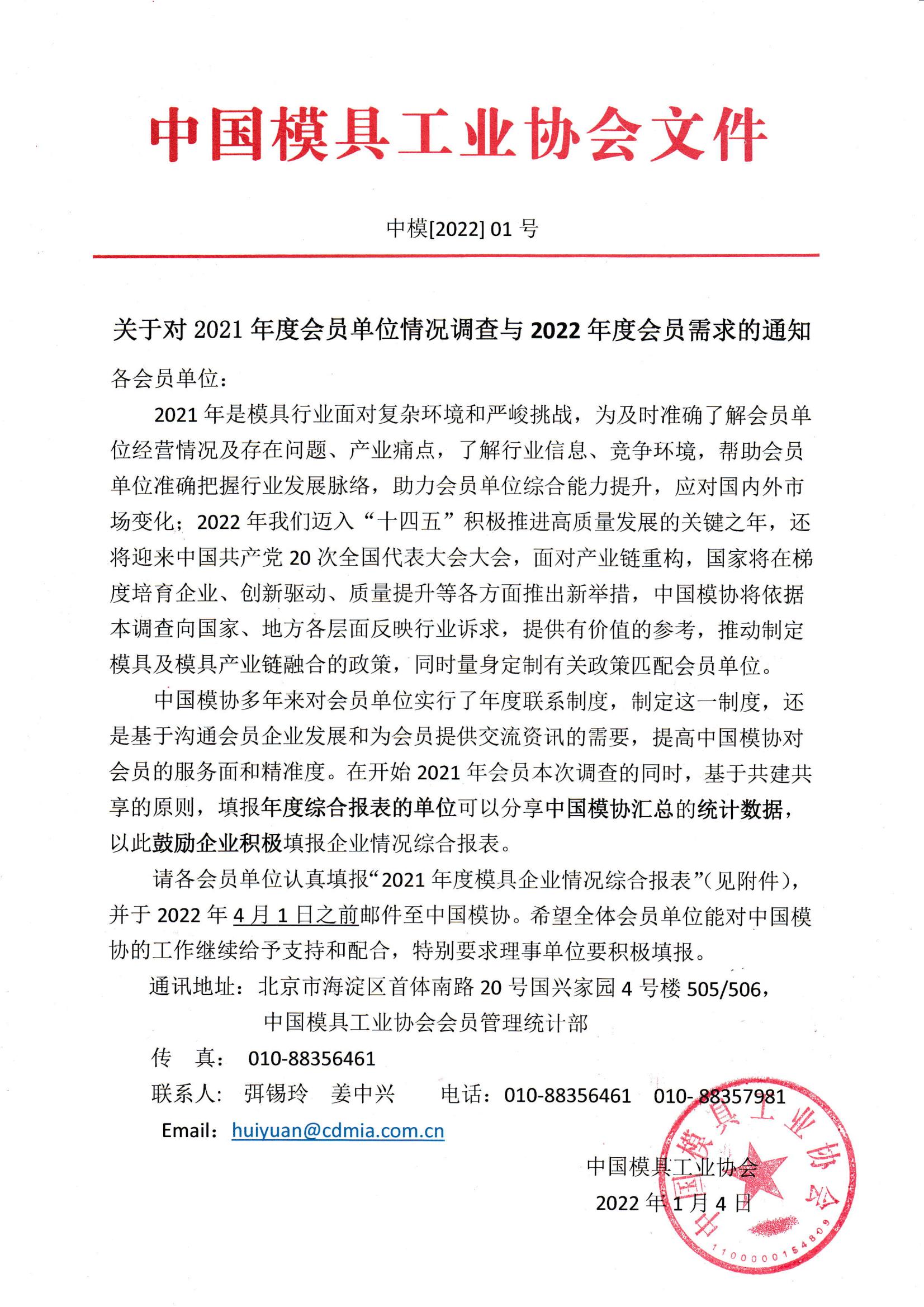 關(guān)于對2021年度會員單位情況調(diào)查與2022年度會員需求的通知