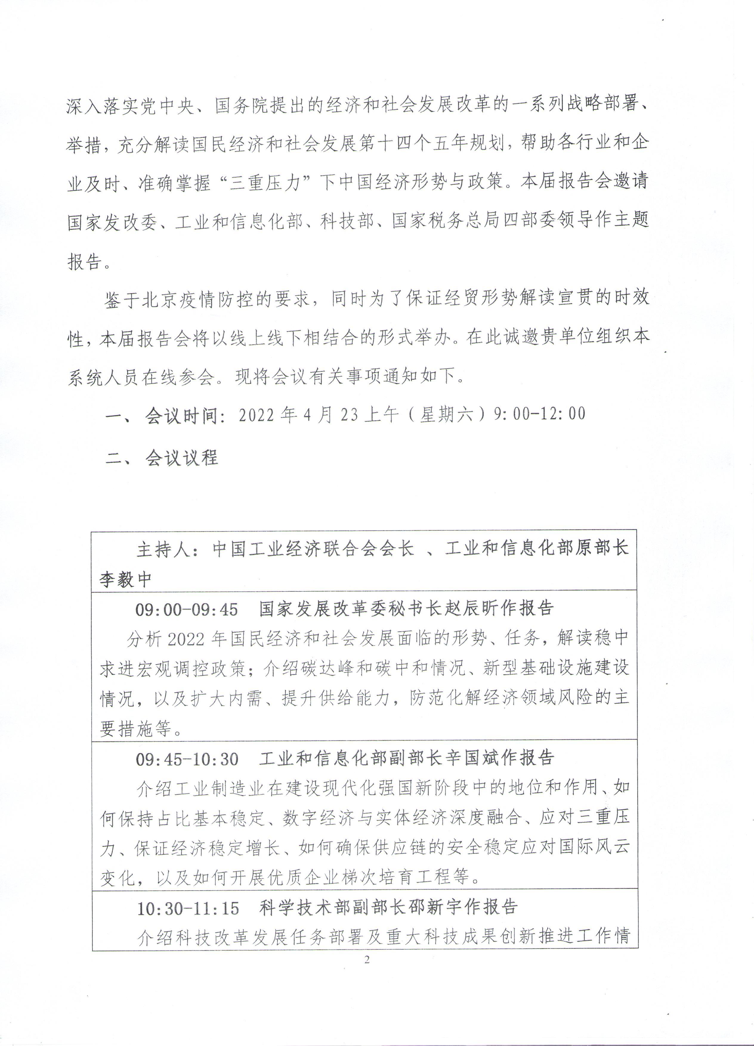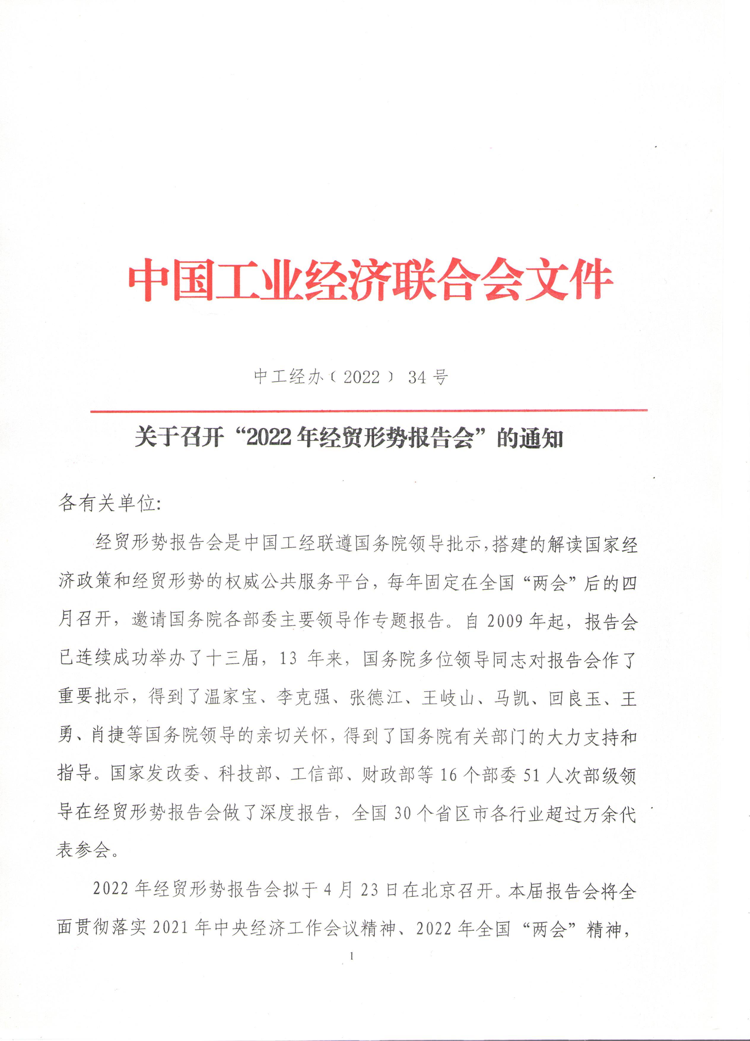 關于召開“2022年經貿形勢報告會”的通知