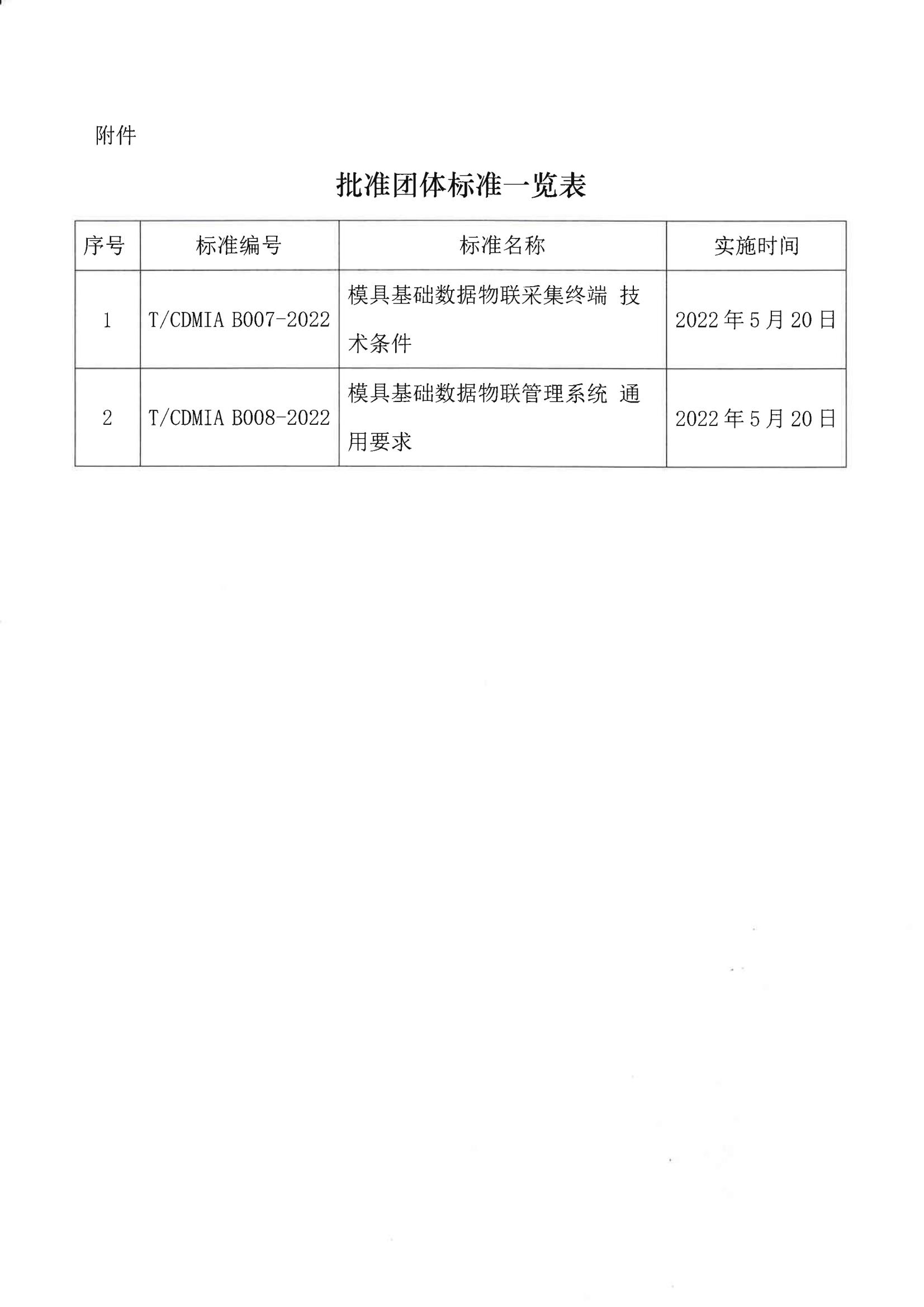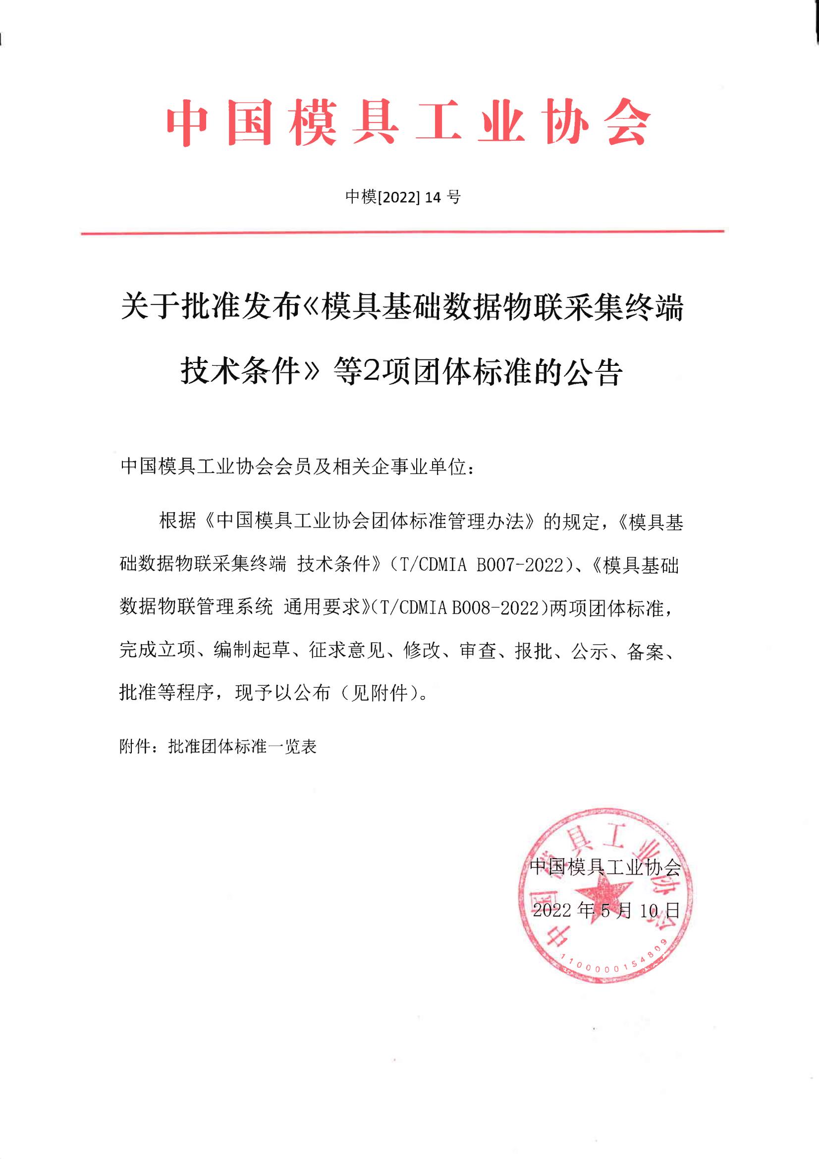 關于批準發布《模具基礎數據物聯采集終端技術條件》等2項團體標準的公告