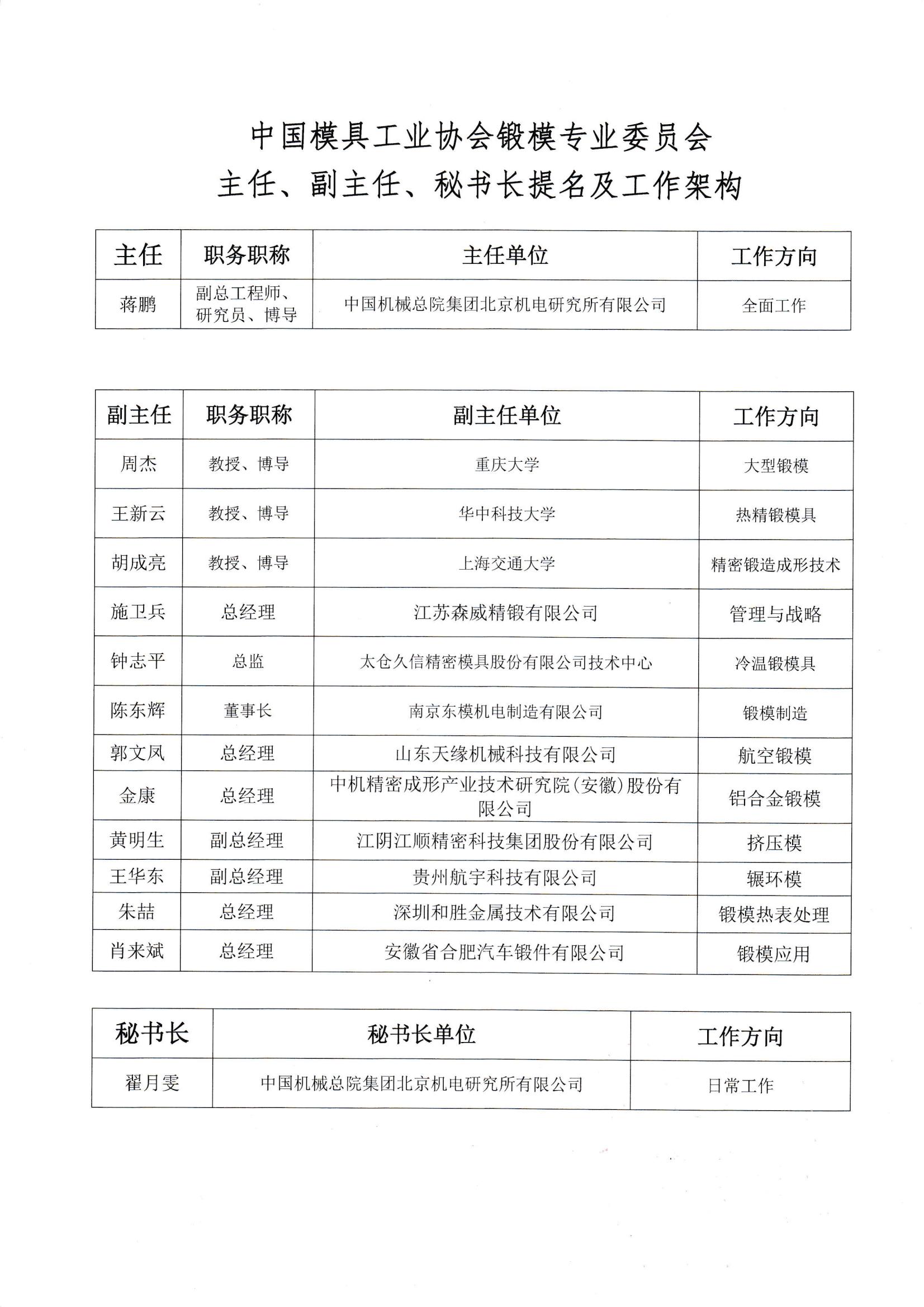 關于成立中國模具工業協會鍛模專業委員會的批復