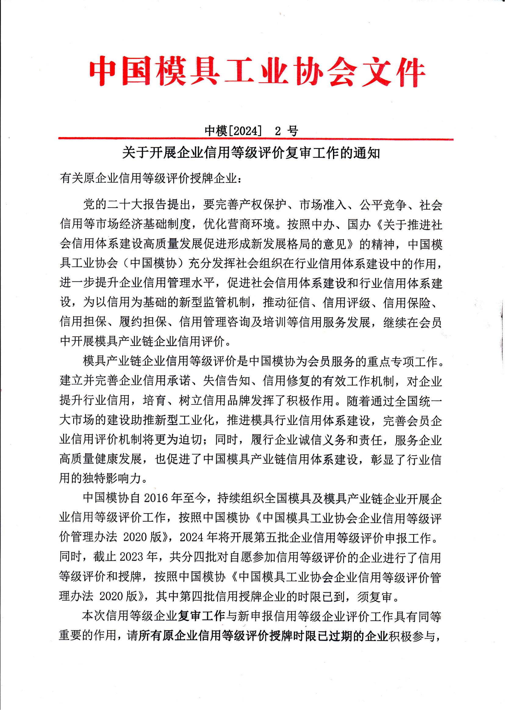關于開展企業信用等級評價復審工作的通知