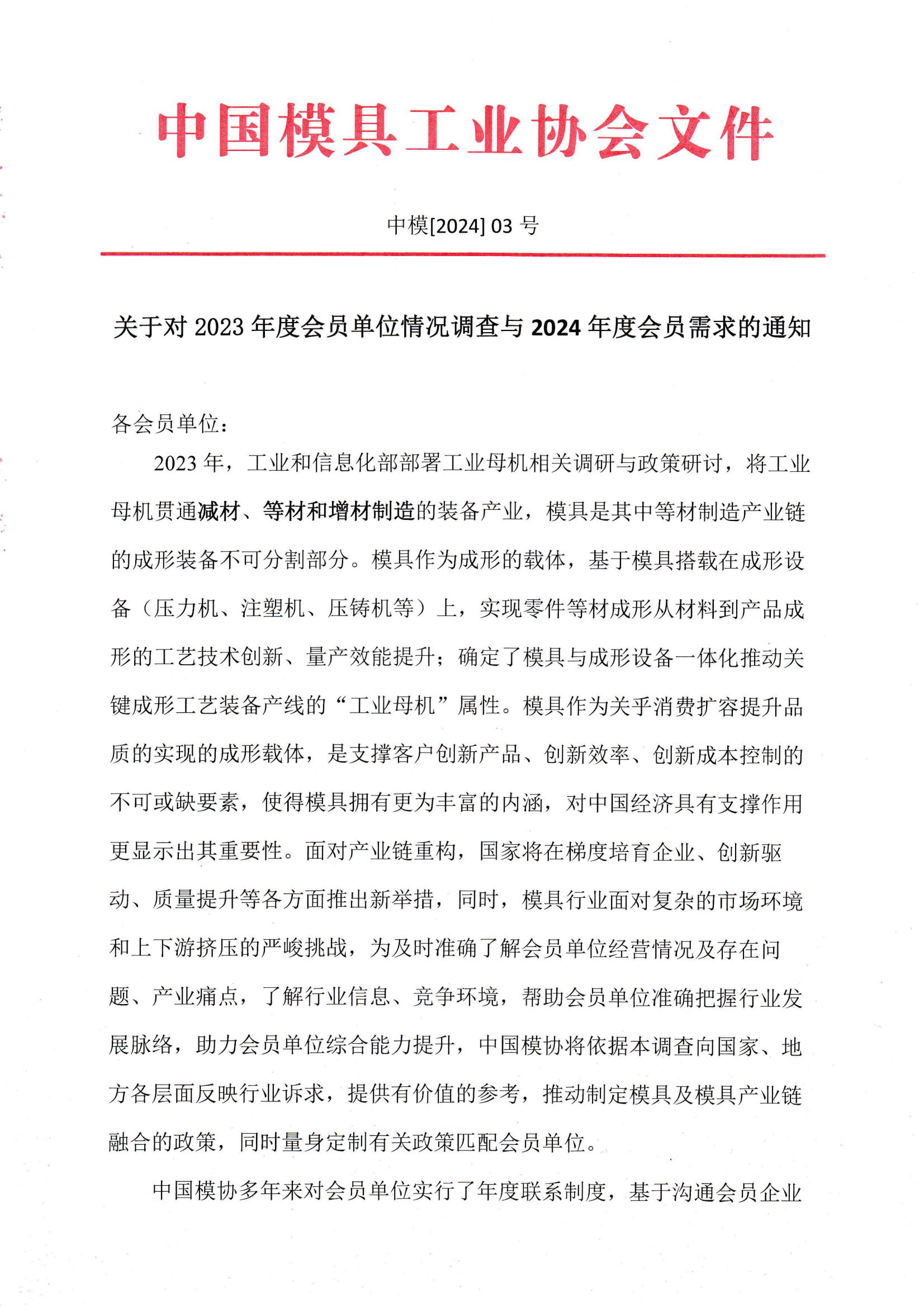 關(guān)于對(duì)2023年度會(huì)員單位情況調(diào)查與2024年度會(huì)員需求的通知