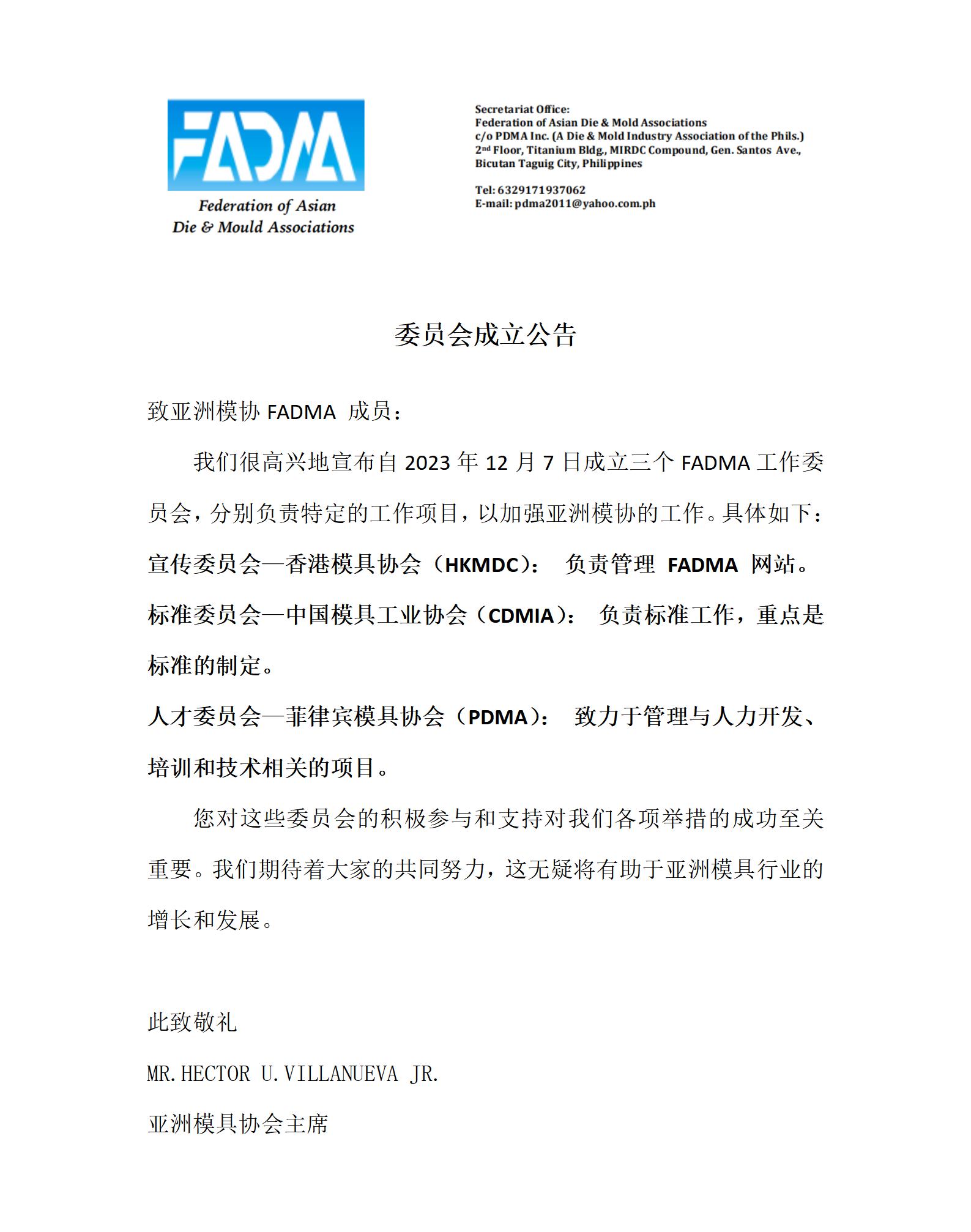亞洲模協(xié)委員會(huì)成立公告