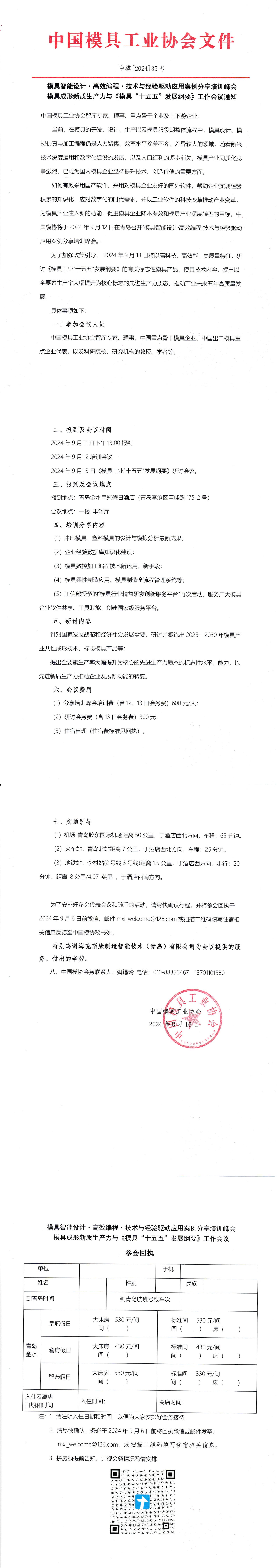 模具智能設計·高效編程·技術與經驗驅動應用案例分享培訓峰會模具成形新質生產力與《模具“十五五”發展綱要》工作會議通知