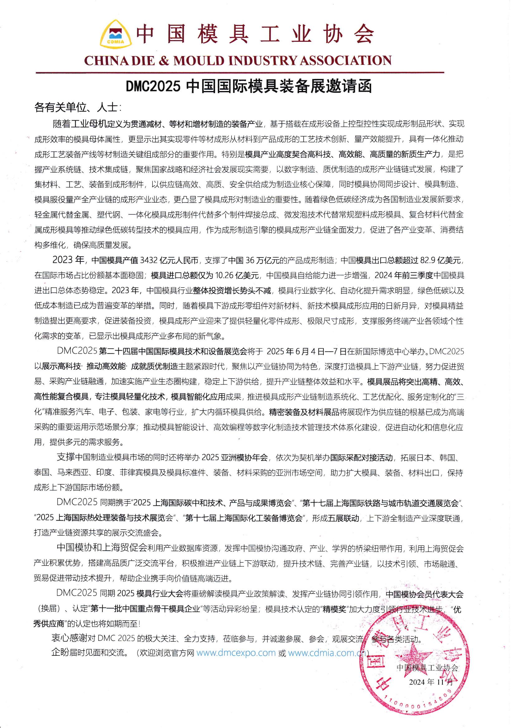 DMC2025中國國際模具裝備展邀請函
