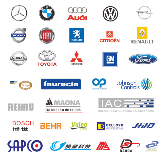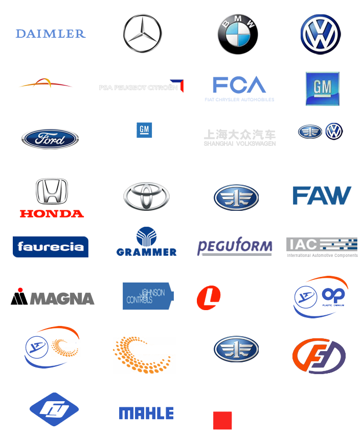 BMW, Volkswagen, GM, Ford, HONDA, TOYOTA, Chrysler, Peugeot, FIAT, SAIC, SINOTRUK, FAW, etc.